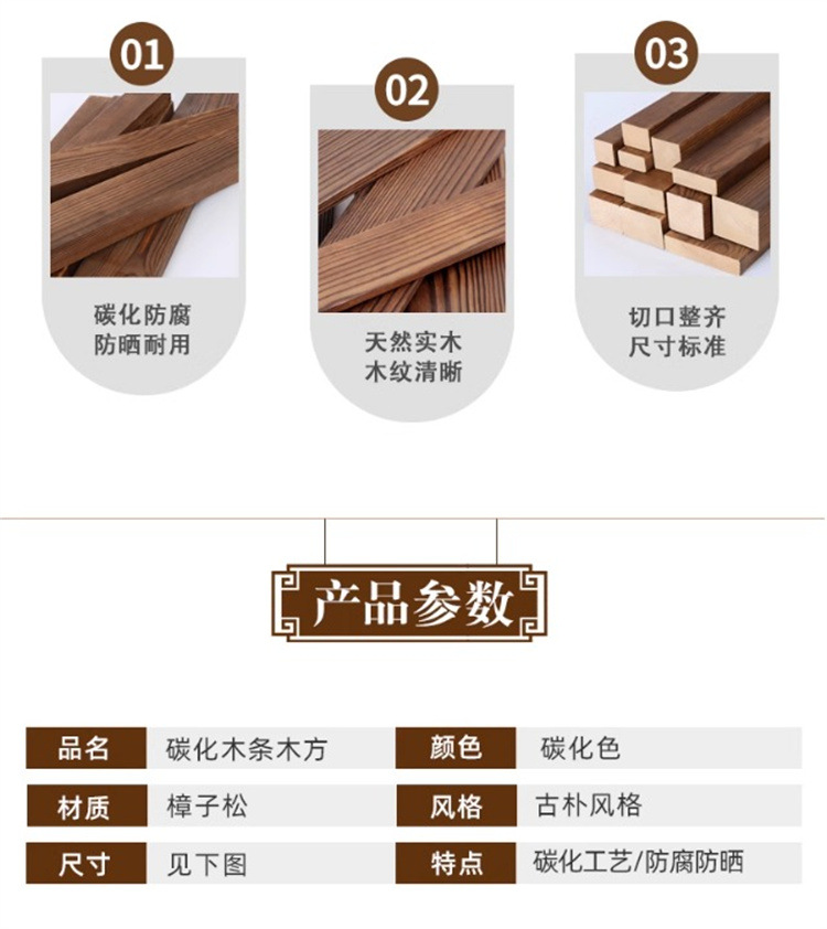 Полосы из карбонизированной древесины, доски из массива дерева, длинные полосы из коррозионностойкой древесины для улицы, киля, декоративные полосы ручной работы и квадратные материалы.