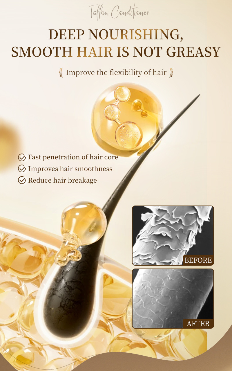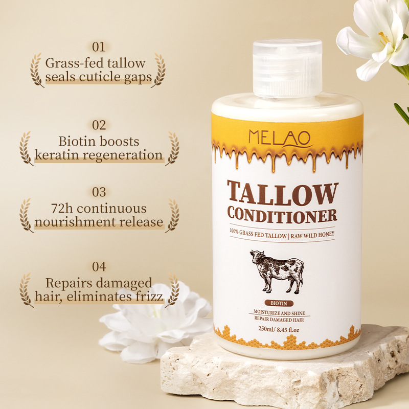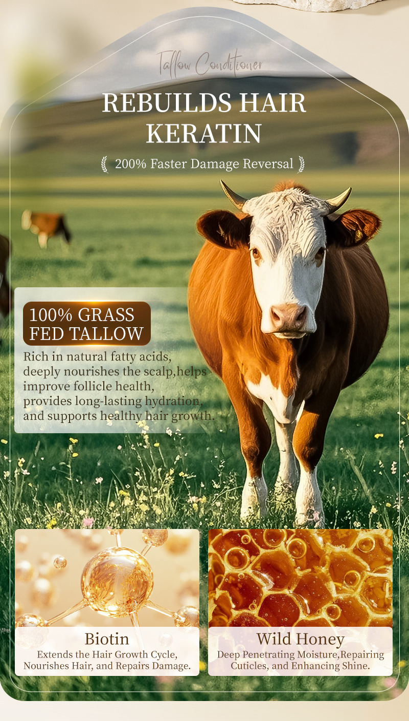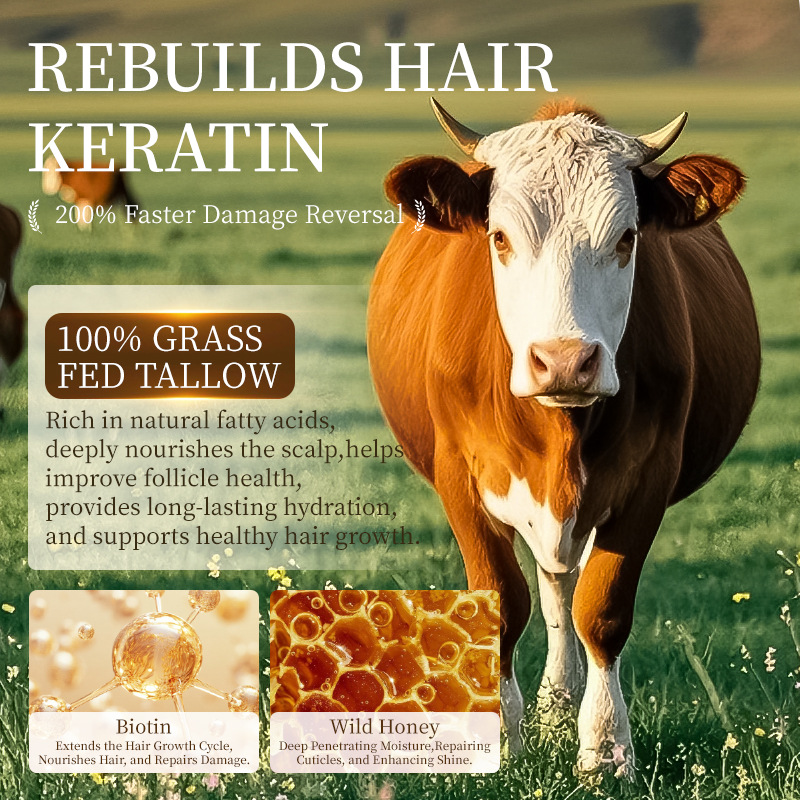 Кондиционер для волос с говяжьим жиром, полученным из травяного откорма, с медом, восстанавливающий, разглаживающий, маска-кондиционер с эффектом баббл-баттер