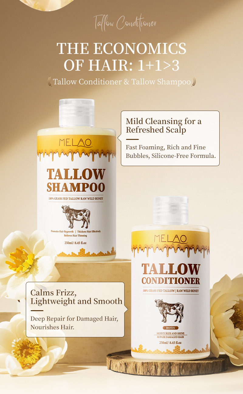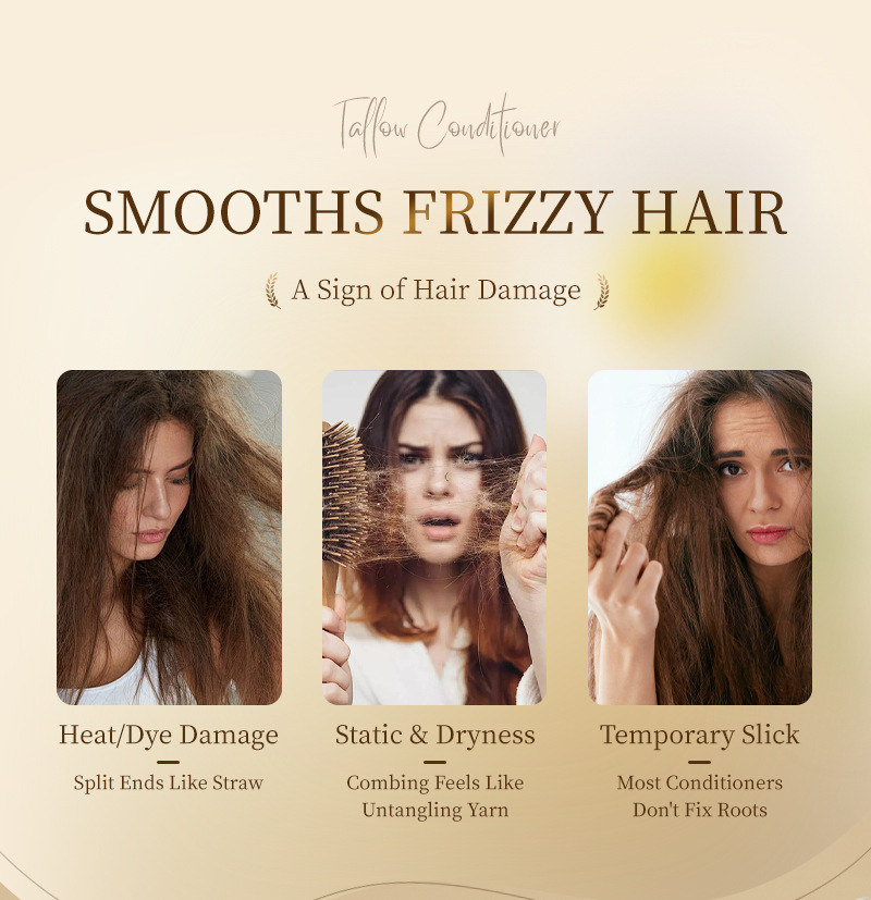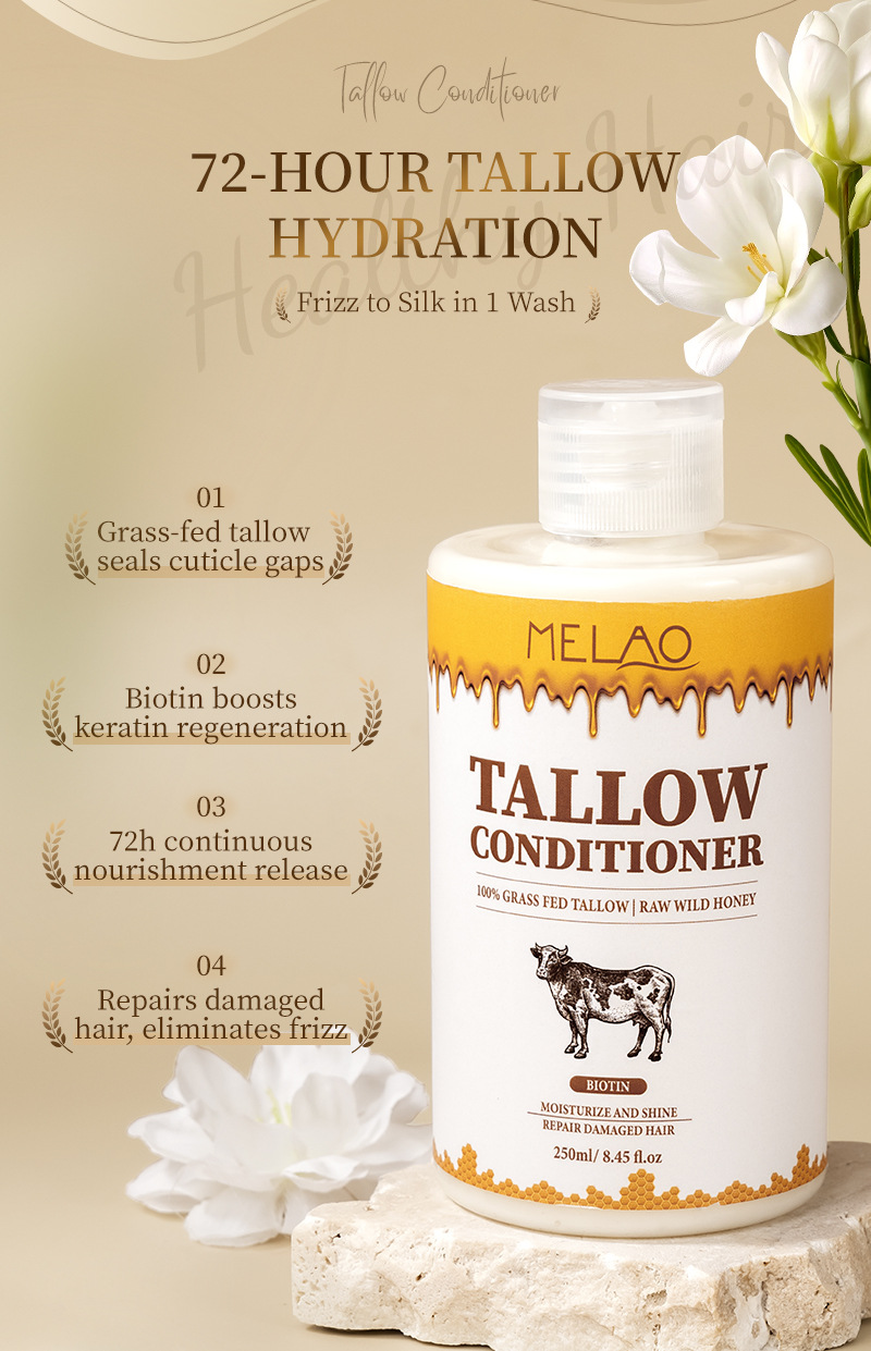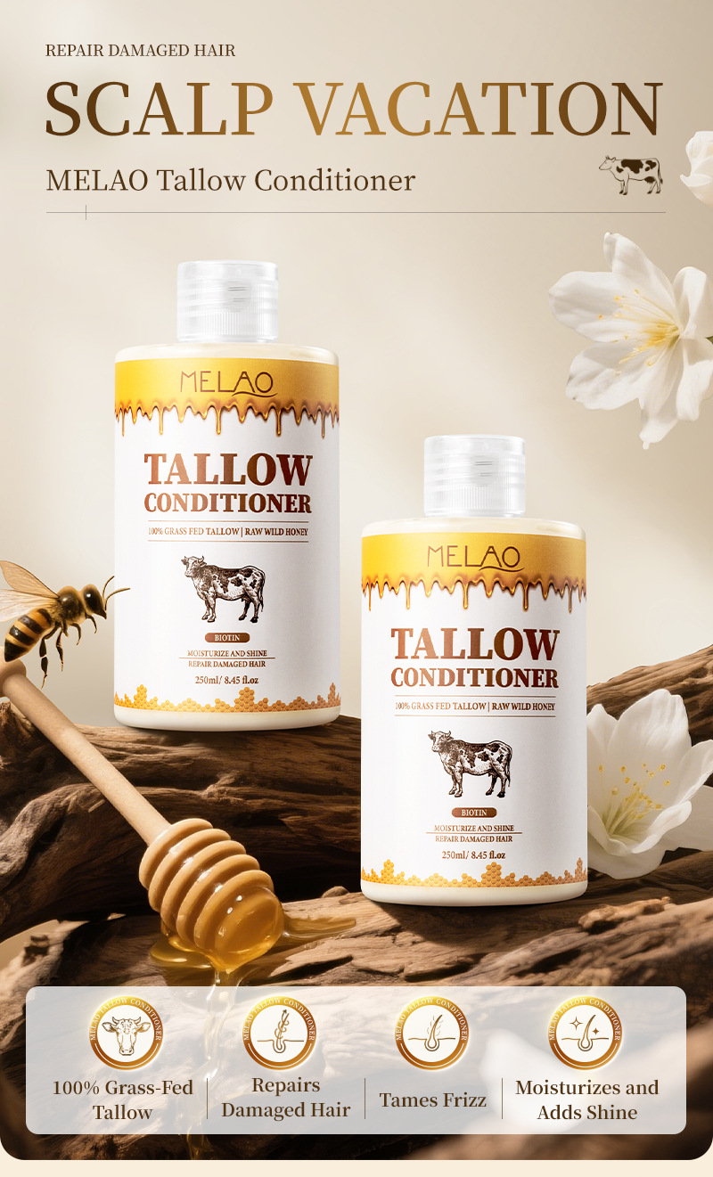 Кондиционер для волос с говяжьим жиром, полученным из травяного откорма, с медом, восстанавливающий, разглаживающий, маска-кондиционер с эффектом баббл-баттер