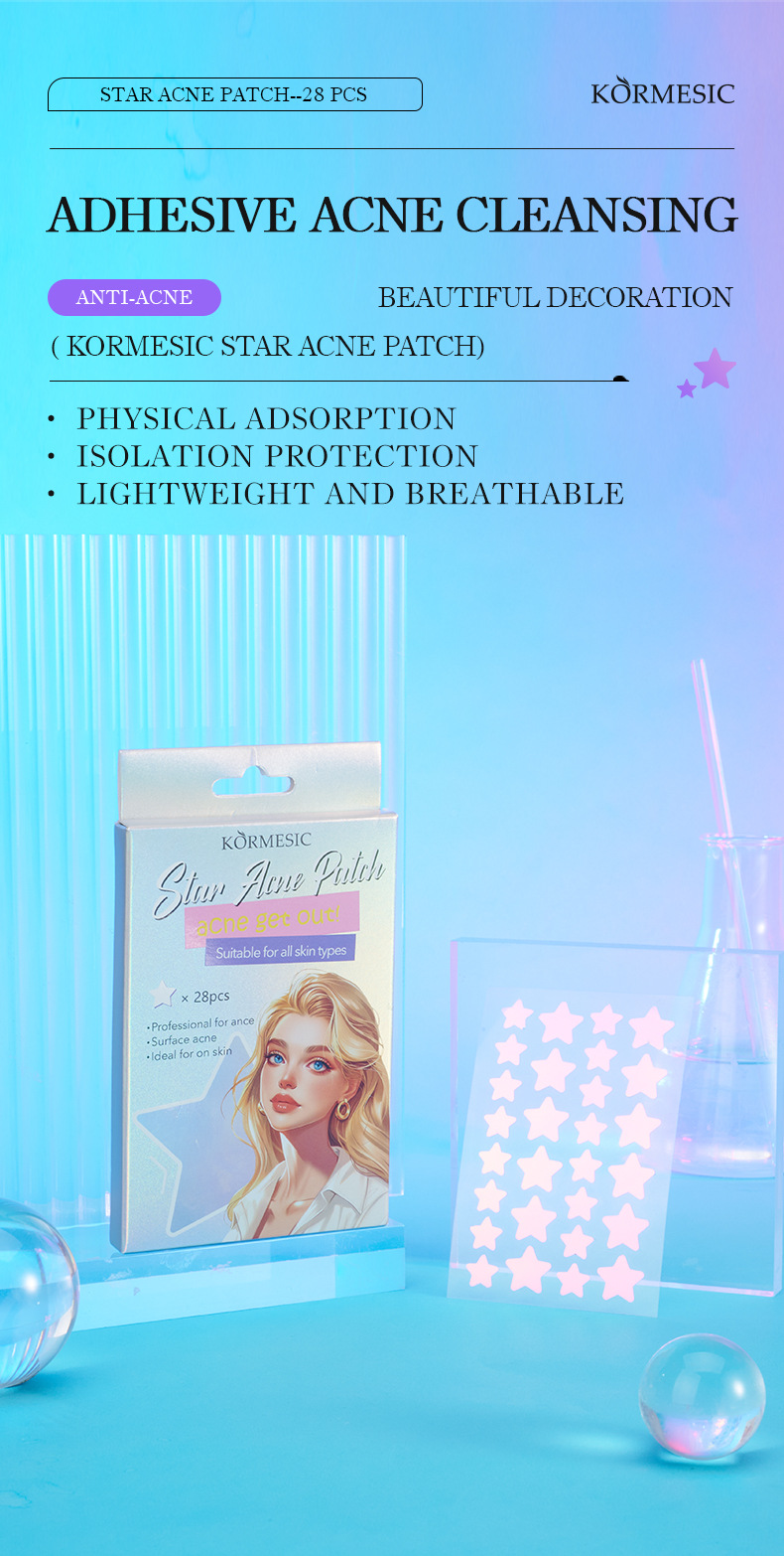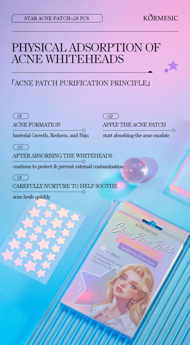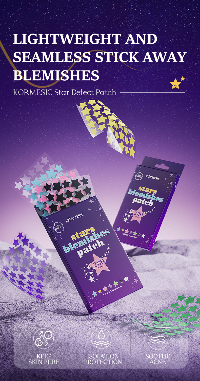 Самые продаваемые на Amazon пластыри от прыщей в форме звезды, полноанглийские, разноцветные, для международной торговли, KORMESIC Acne Patch