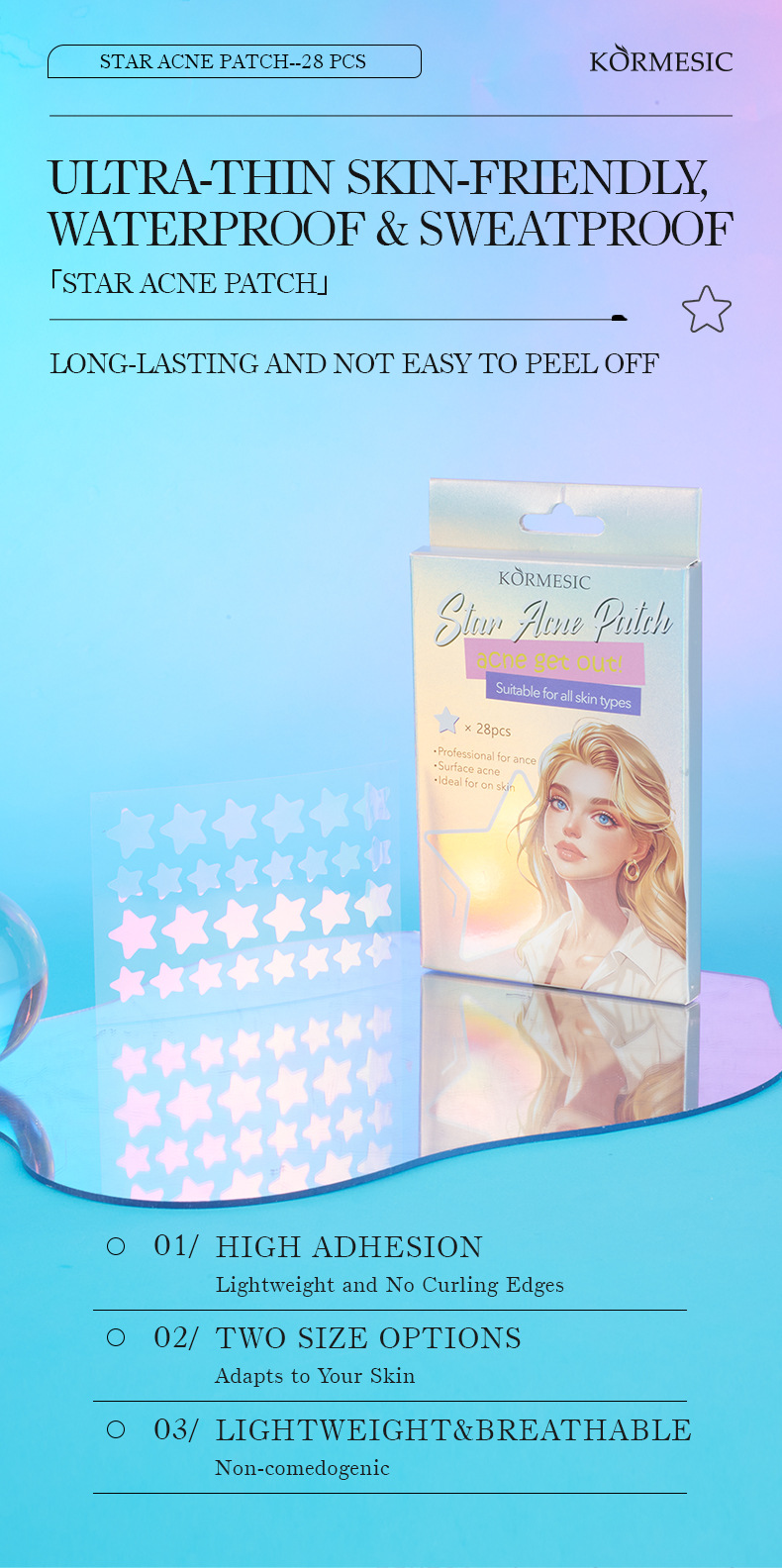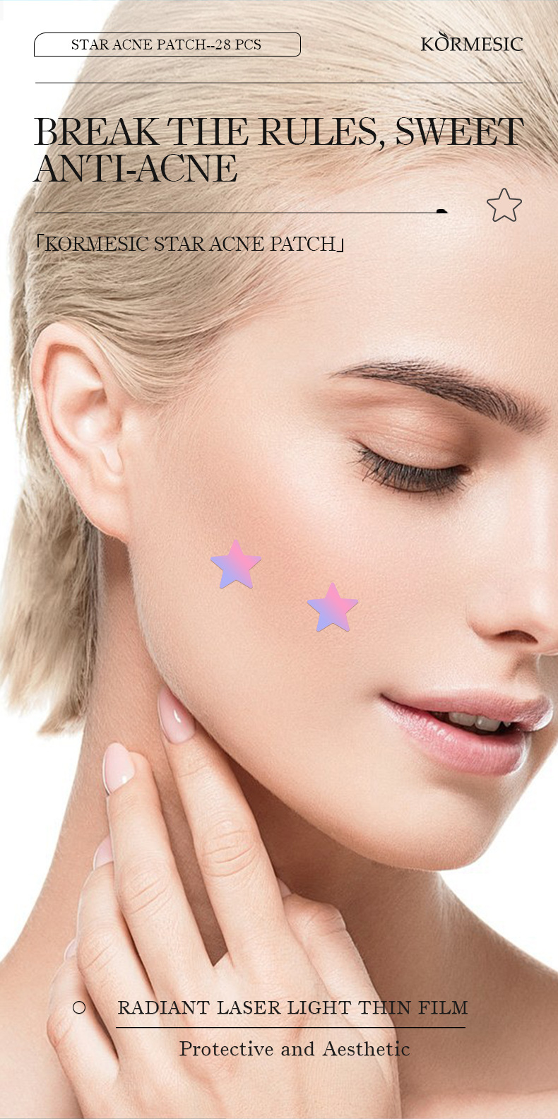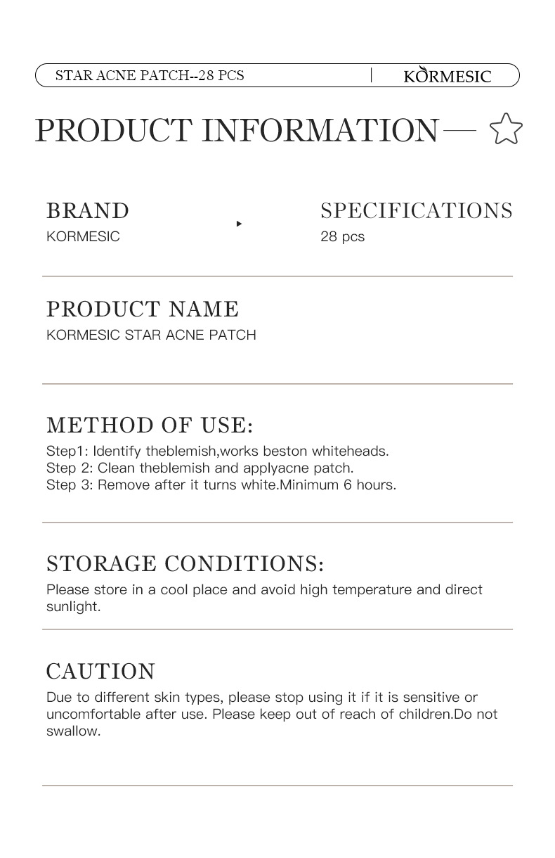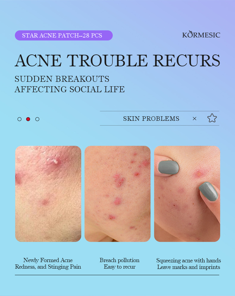 Самые продаваемые на Amazon пластыри от прыщей в форме звезды, полноанглийские, разноцветные, для международной торговли, KORMESIC Acne Patch