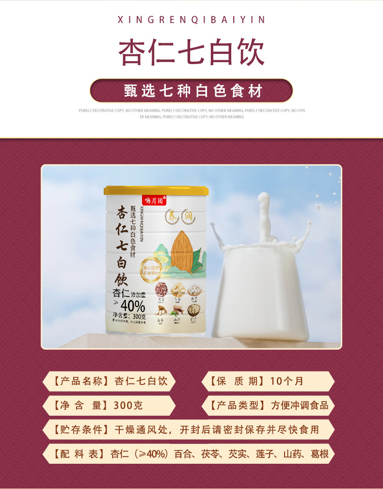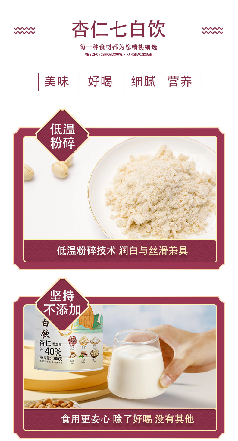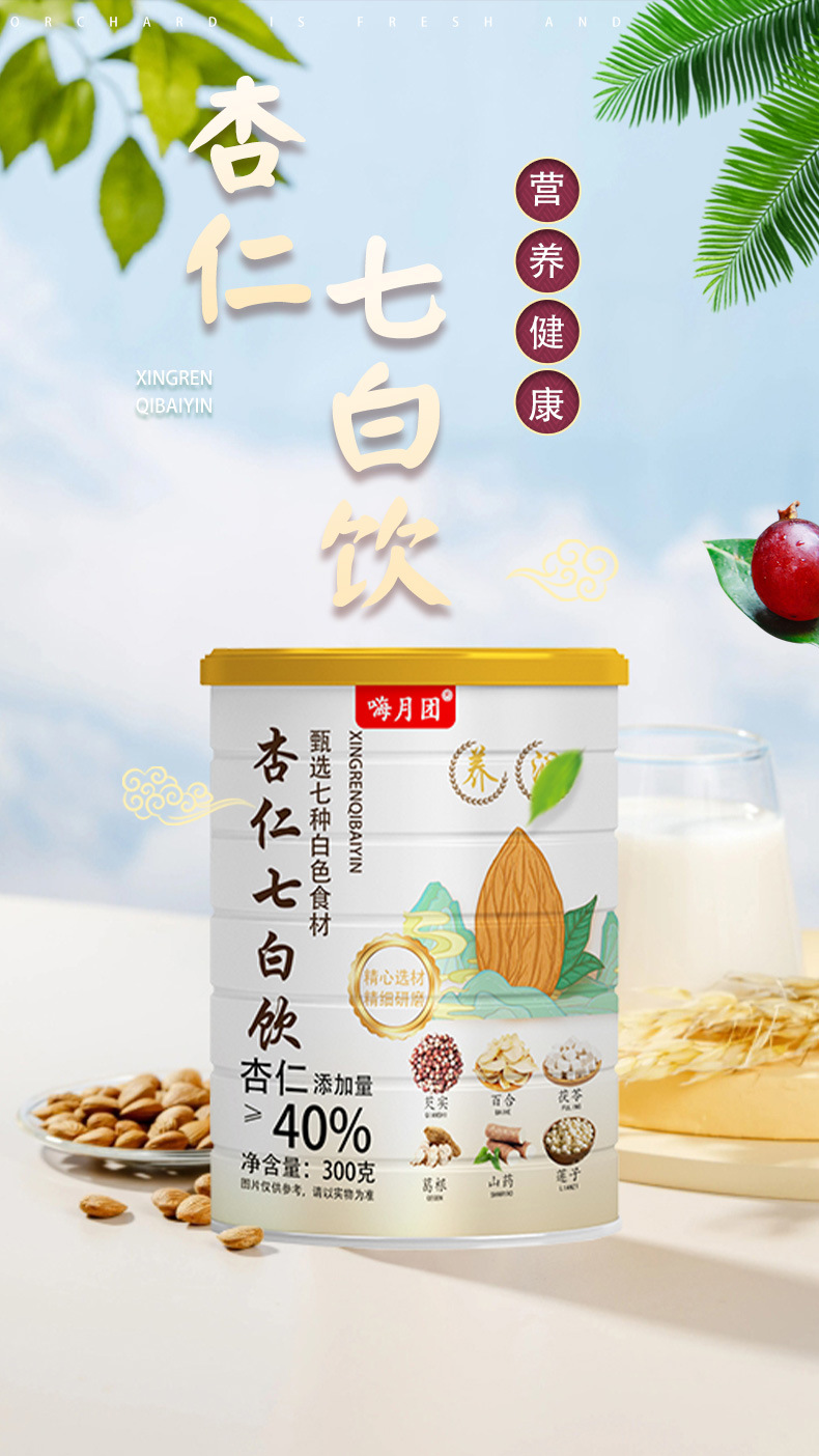 Белый напиток Almond Seven использует белый цвет для питания белого цвета. 300 г миндального напитка, заменитель пищи, питательный порошок для завтрака, заварной напиток, сытость.