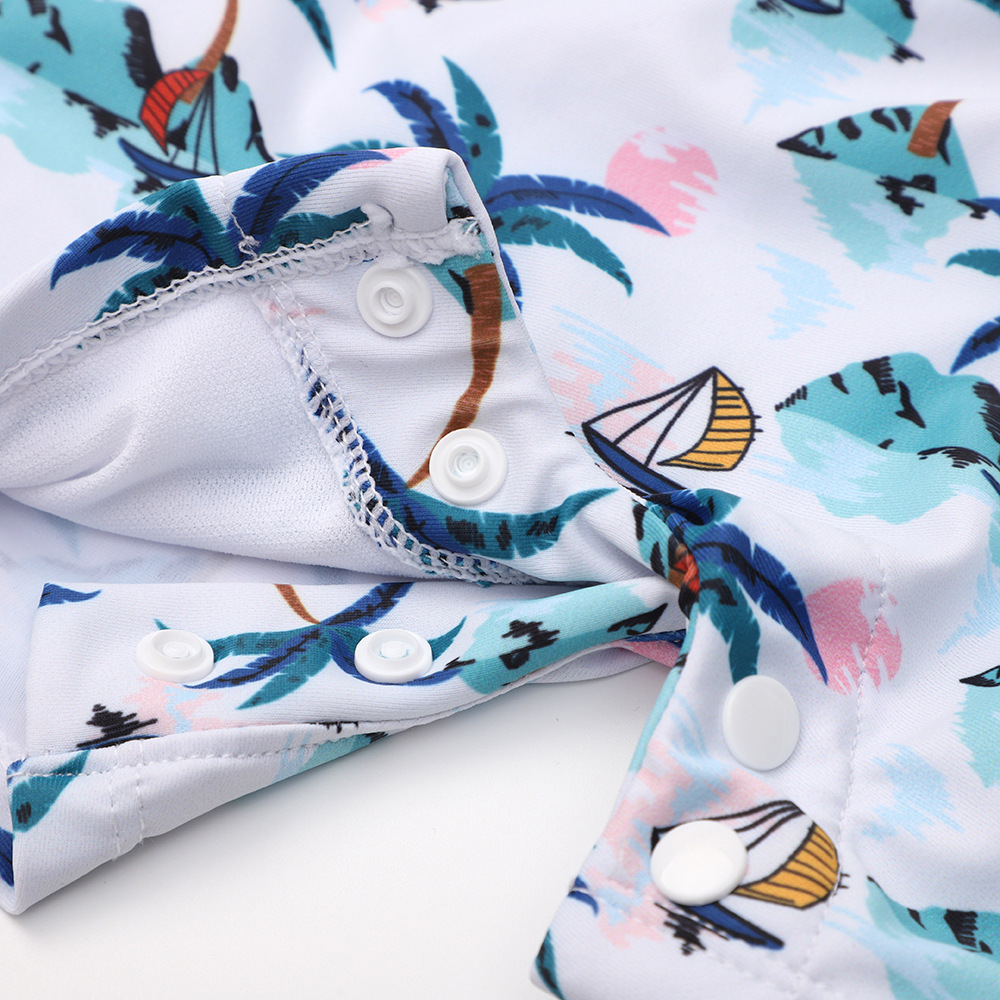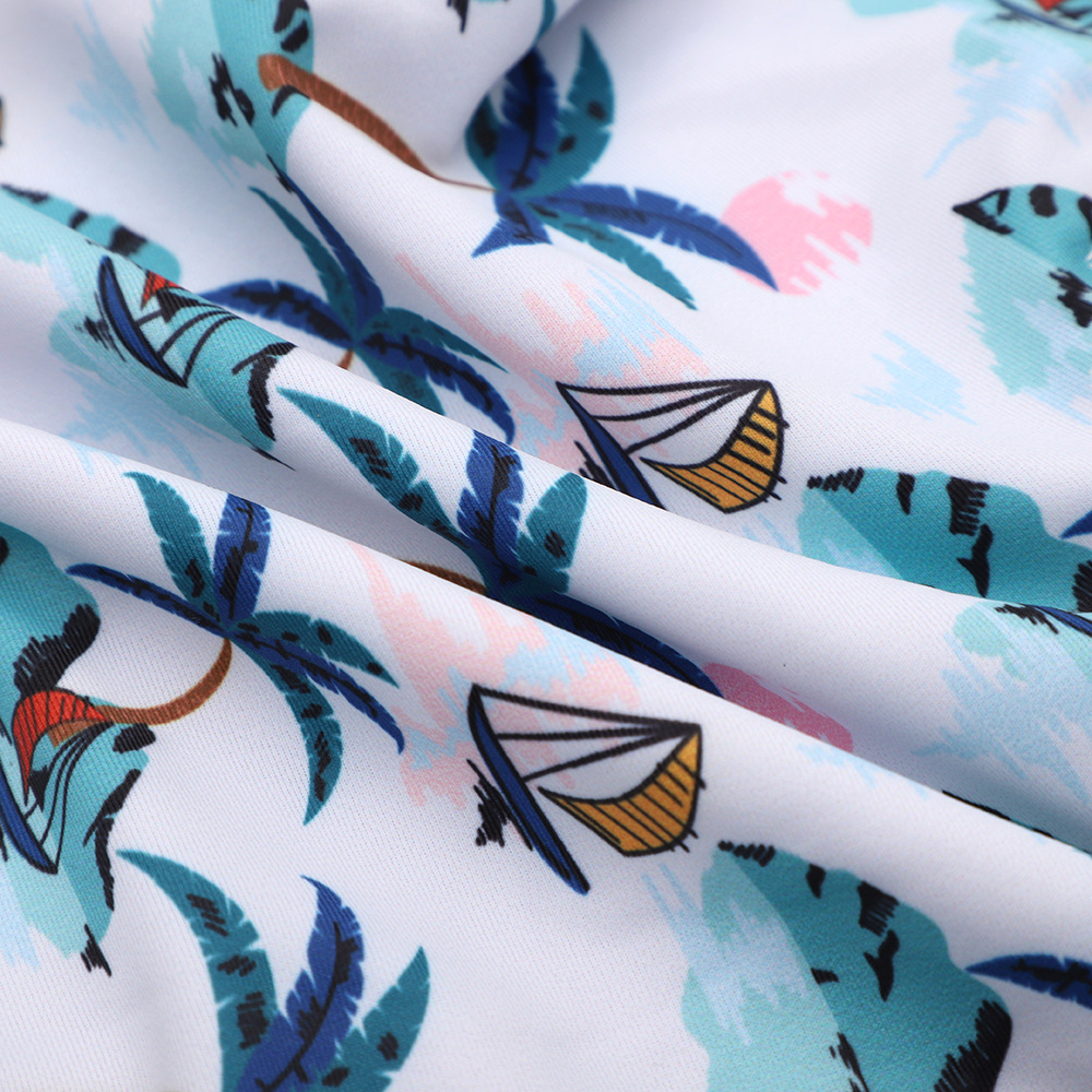 принт желтой акулы; принт динозавра; принт кокосовой пальмы