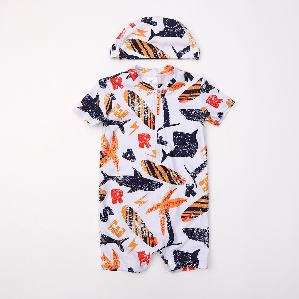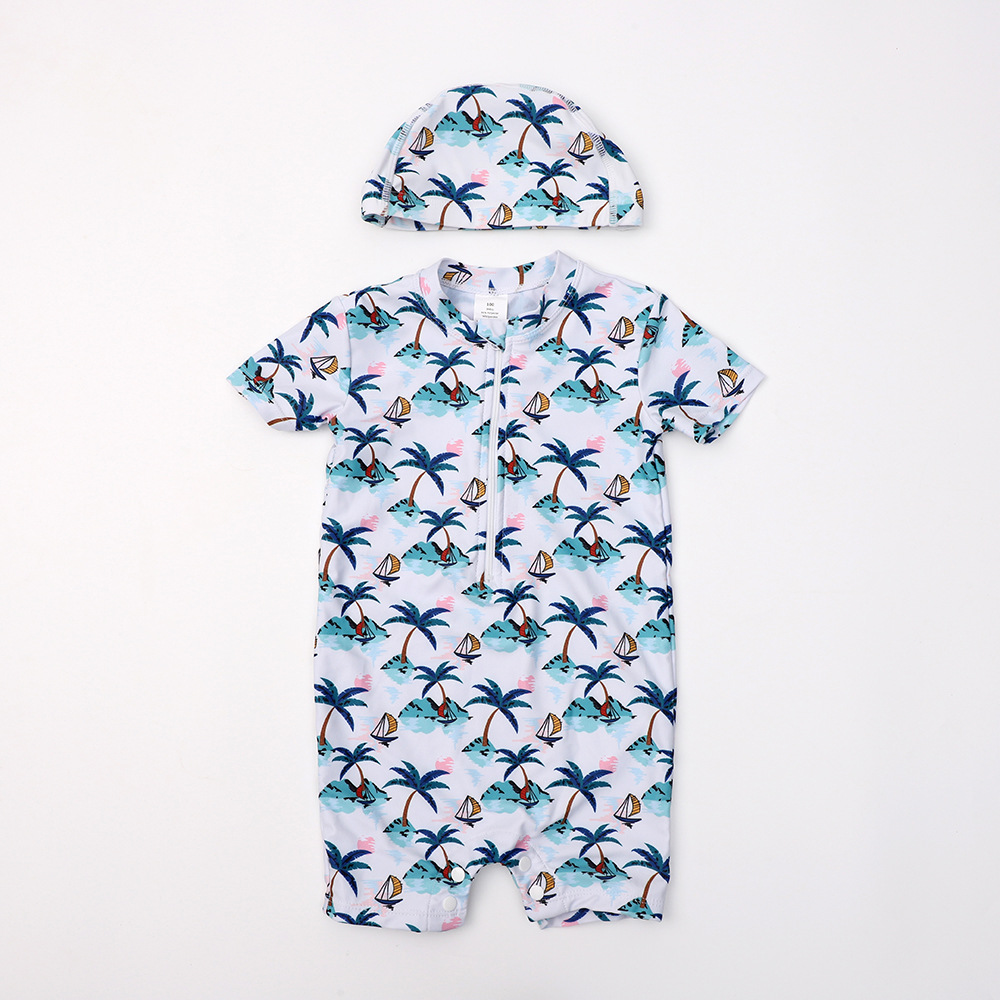 [Защита от солнца и ощущение прохлады] Быстросохнущий купальник для мальчиков, цельный детский разделенный детский купальник, новый детский купальник с короткими рукавами