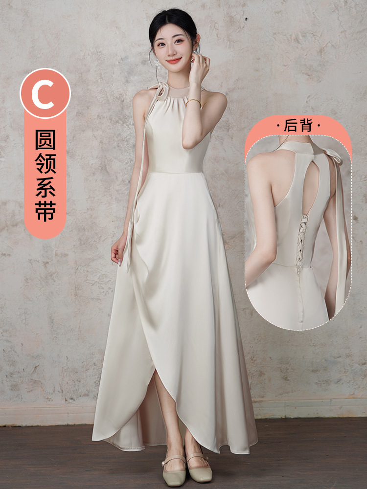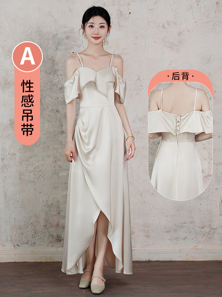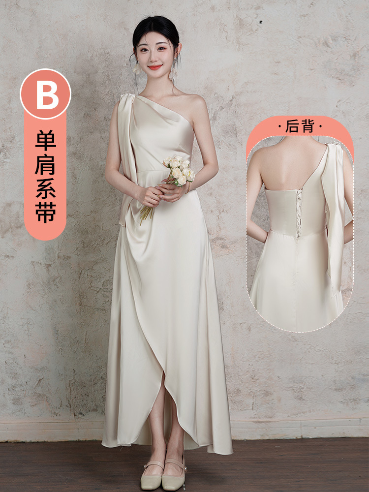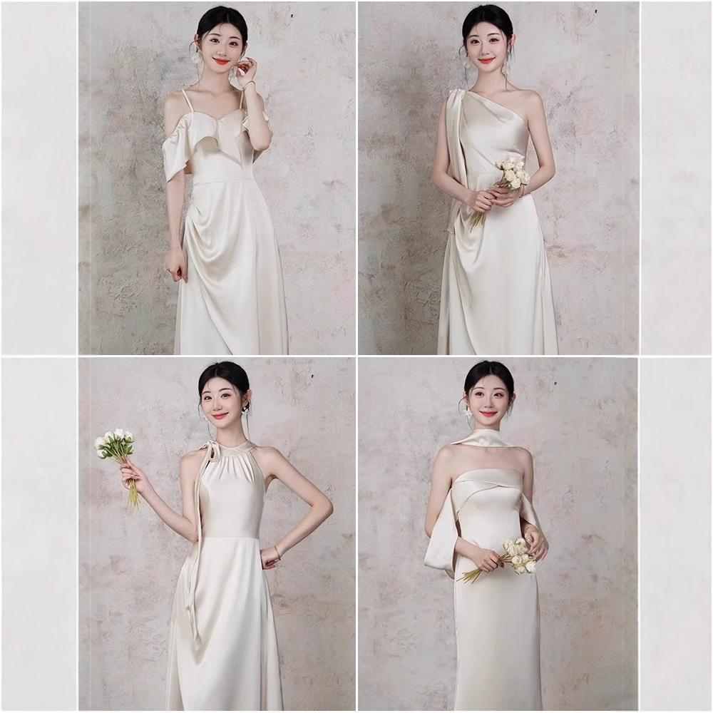 Платья для подружек невесты цвета шампань, которые можно носить повседневно, новая летняя модель 2026 года из атласа для групп сестер, идеально подходят для ежегодных встреч, уникальные и эффектные.