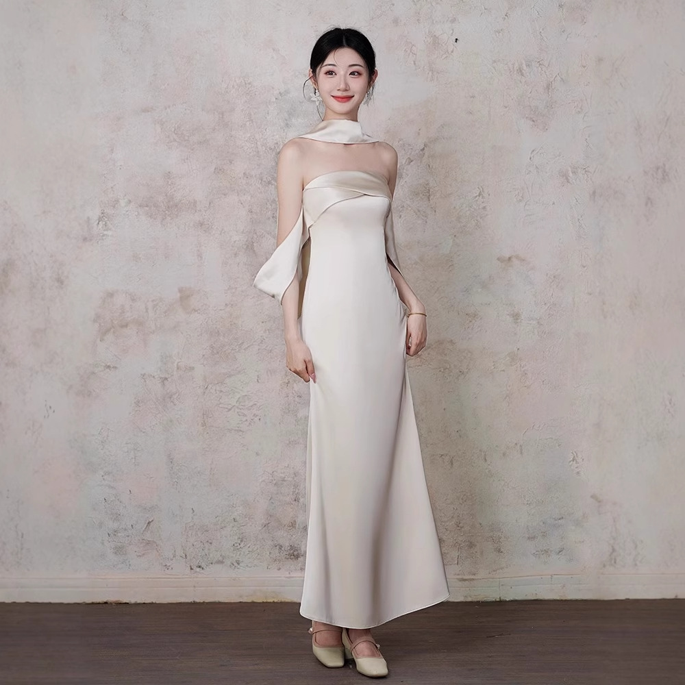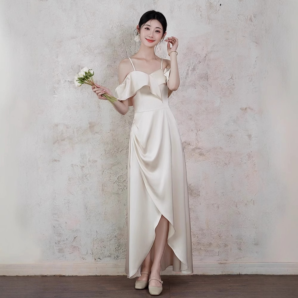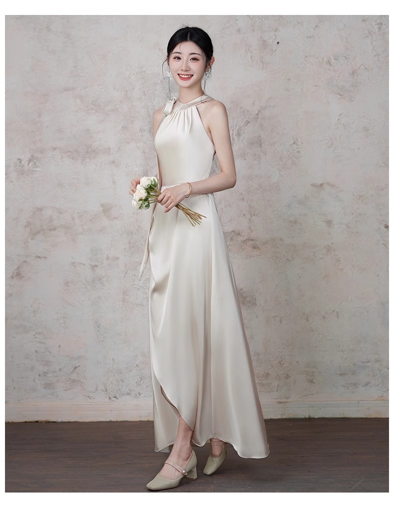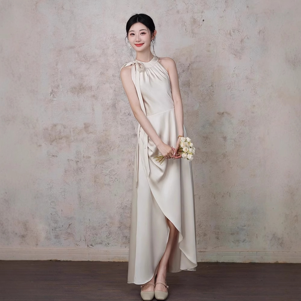 Платья для подружек невесты цвета шампань, которые можно носить повседневно, новая летняя модель 2026 года из атласа для групп сестер, идеально подходят для ежегодных встреч, уникальные и эффектные.