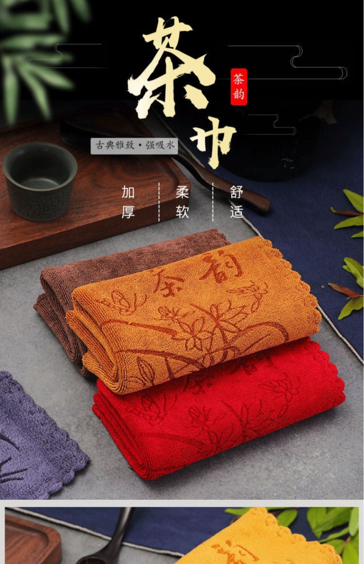 Чайное полотенце кунг-фу Высококачественная чайная ткань впитывает воду и утолщает чайный сервиз полотенце чайный столик