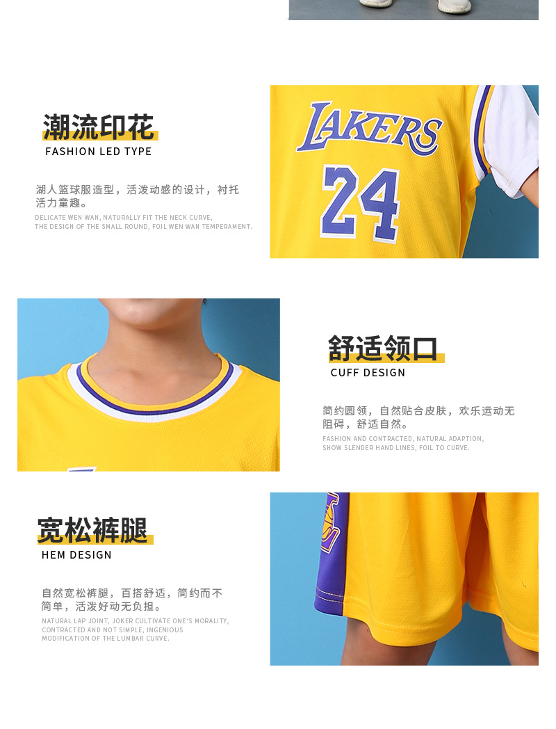 Детский комплект баскетбольной формы № 24, трикотажный спортивный костюм, тренировочная форма, форма для выступлений в детском саду, трикотаж для спортивных встреч