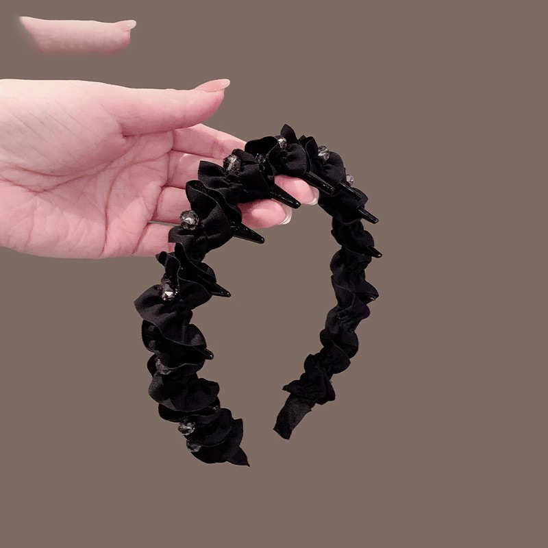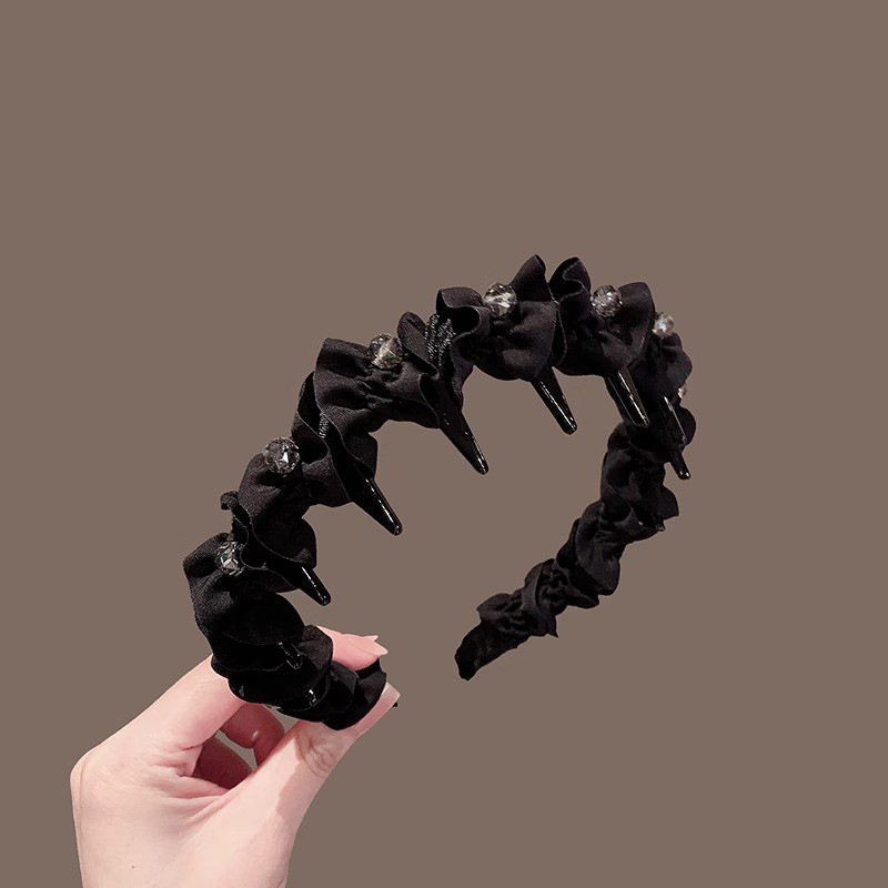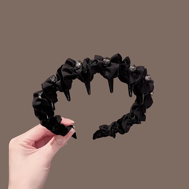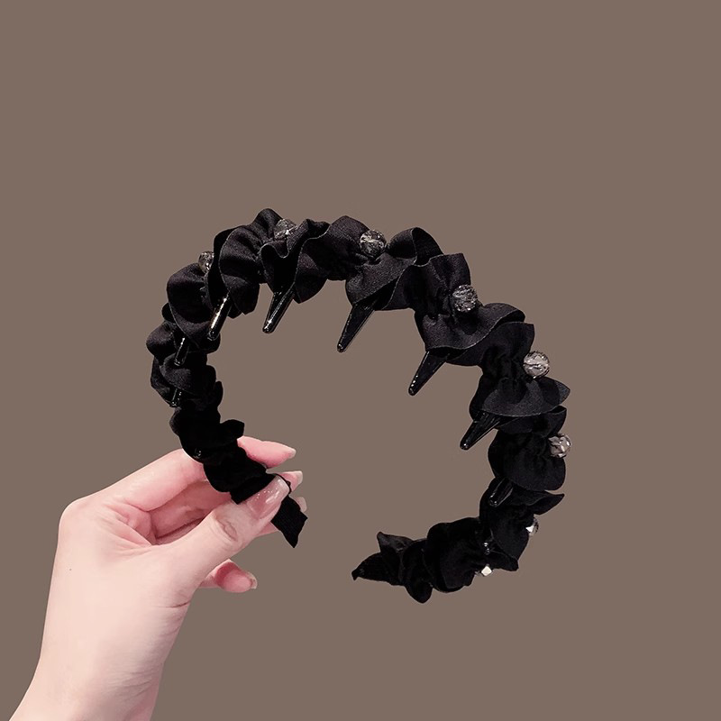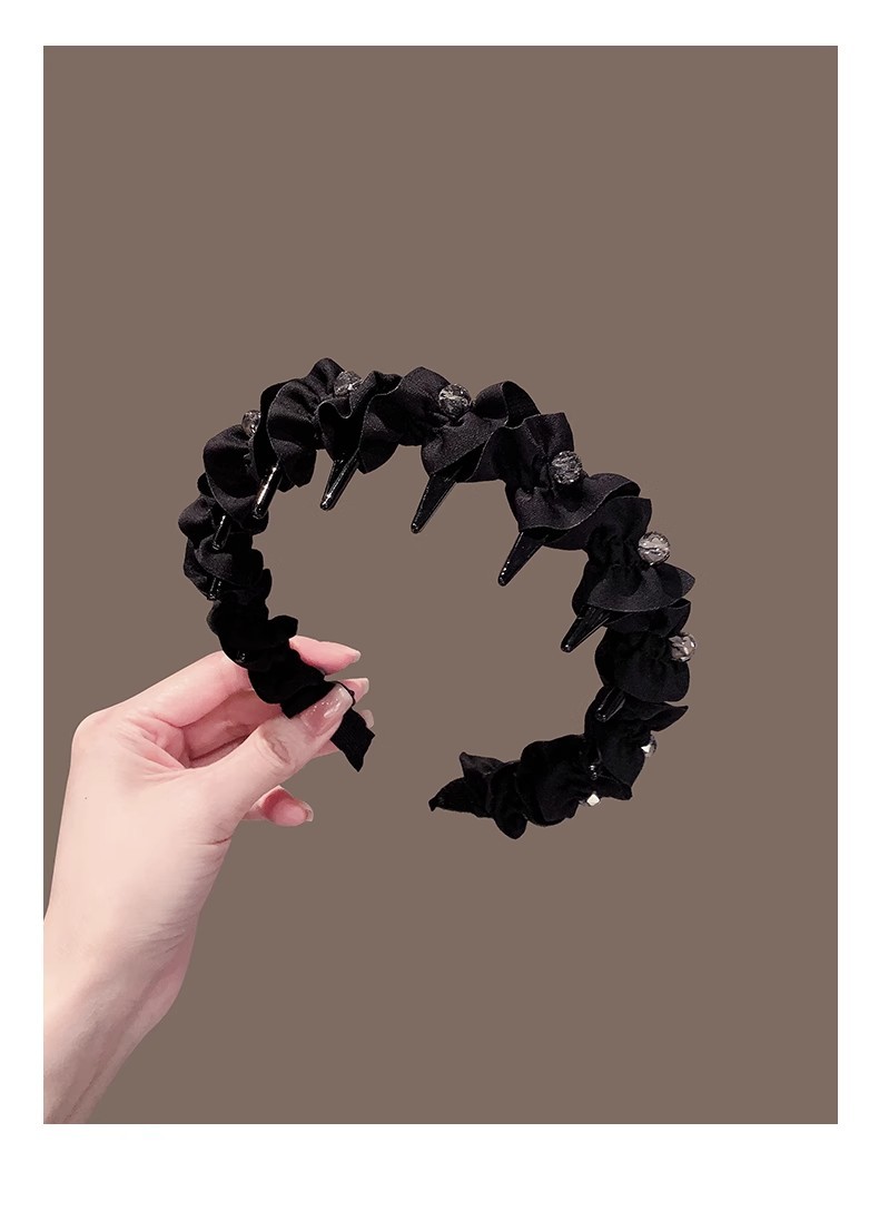 Черная повязка на голову с кристаллами для женщин 2025, новая высокая корона, плетеная заколка для волос, повседневная повязка с зубцами, нескользящая повязка для умывания лица
