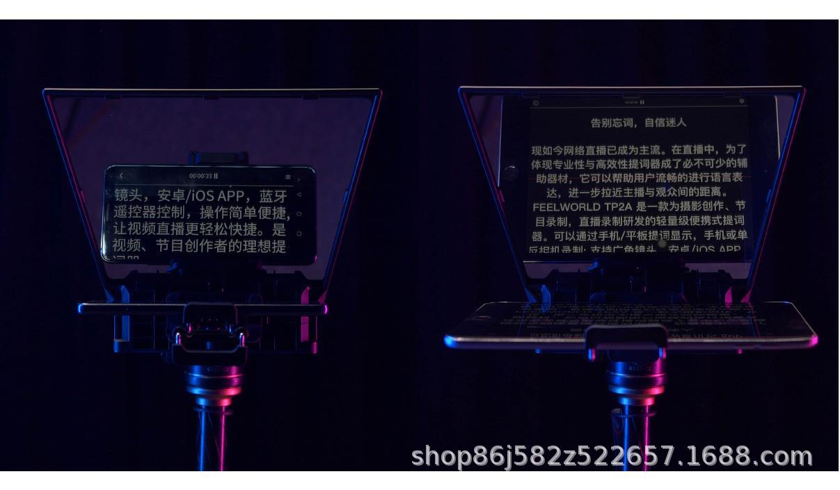 现如今网络直播已成为主流。在直播中,为了体现专业性与高效性提词器成了必不可少的辅助器材,它可以帮助用户流畅的进行语言表达,进一步拉近主播与观众间的距离。FEELWORLD TP2 是一款为摄影创作、节目录制,直播录制研发的轻量级便携式提词器。可以通过手机/平板提词显示,单反相机录制; 支持广角镜头,安卓/iOS APP,蓝牙遥控器控制,操作简单便捷,让视频直播更轻松快捷。是视频、节目创作者的理想提词器