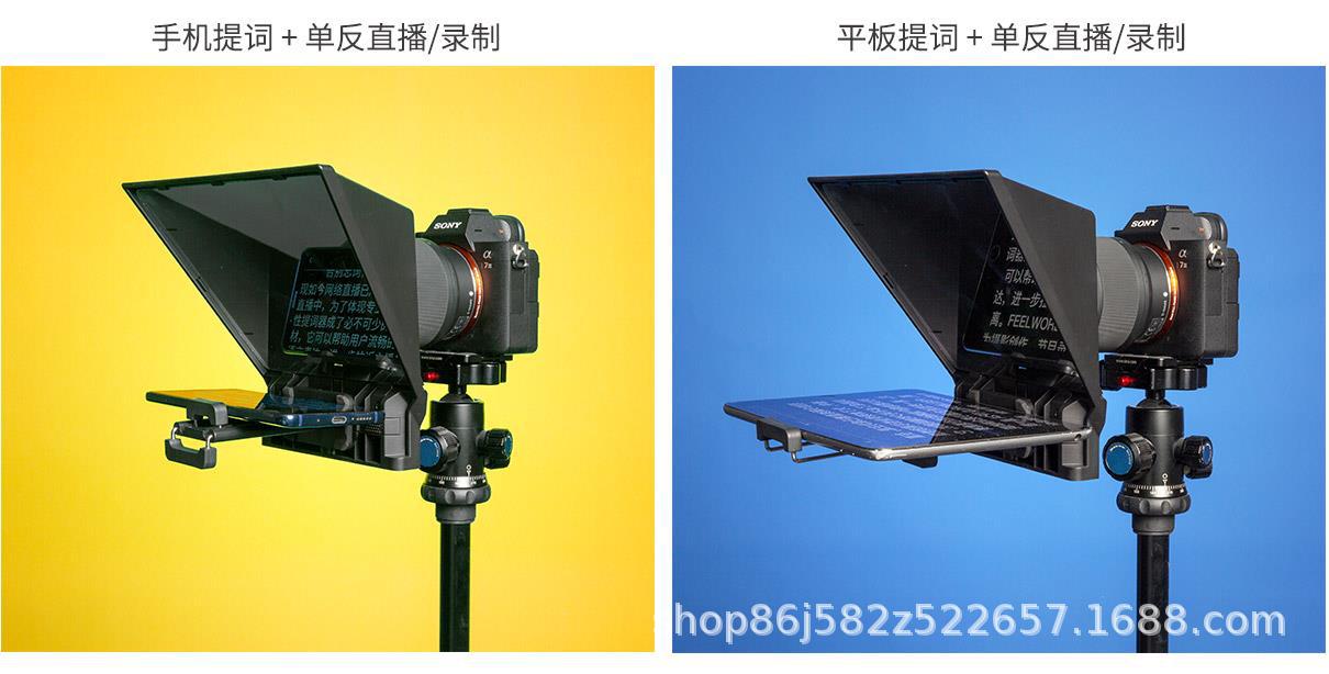 TP2 可以通过手机或平板提词,单反录制,适用视频直播,人物访谈,演播主持等场合。