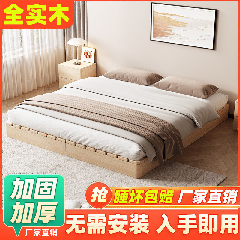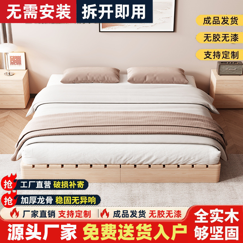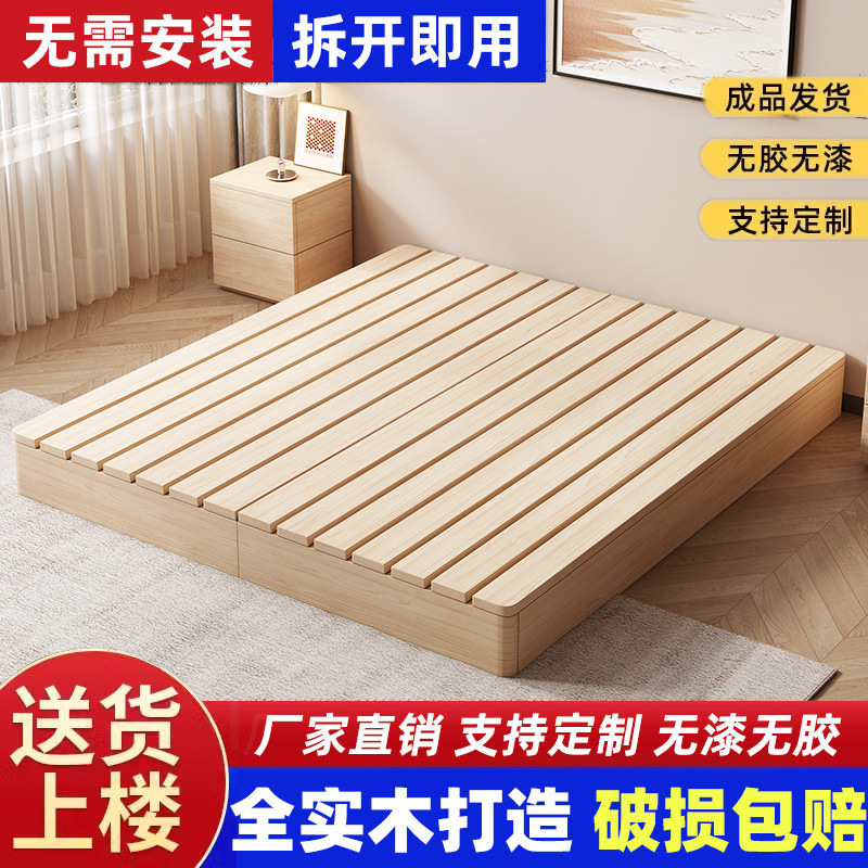 Каркас кровати из массива дерева, кровать с татами, напольная кровать для аренды, влагостойкая, современная двуспальная деревянная кровать, бесплатная доставка