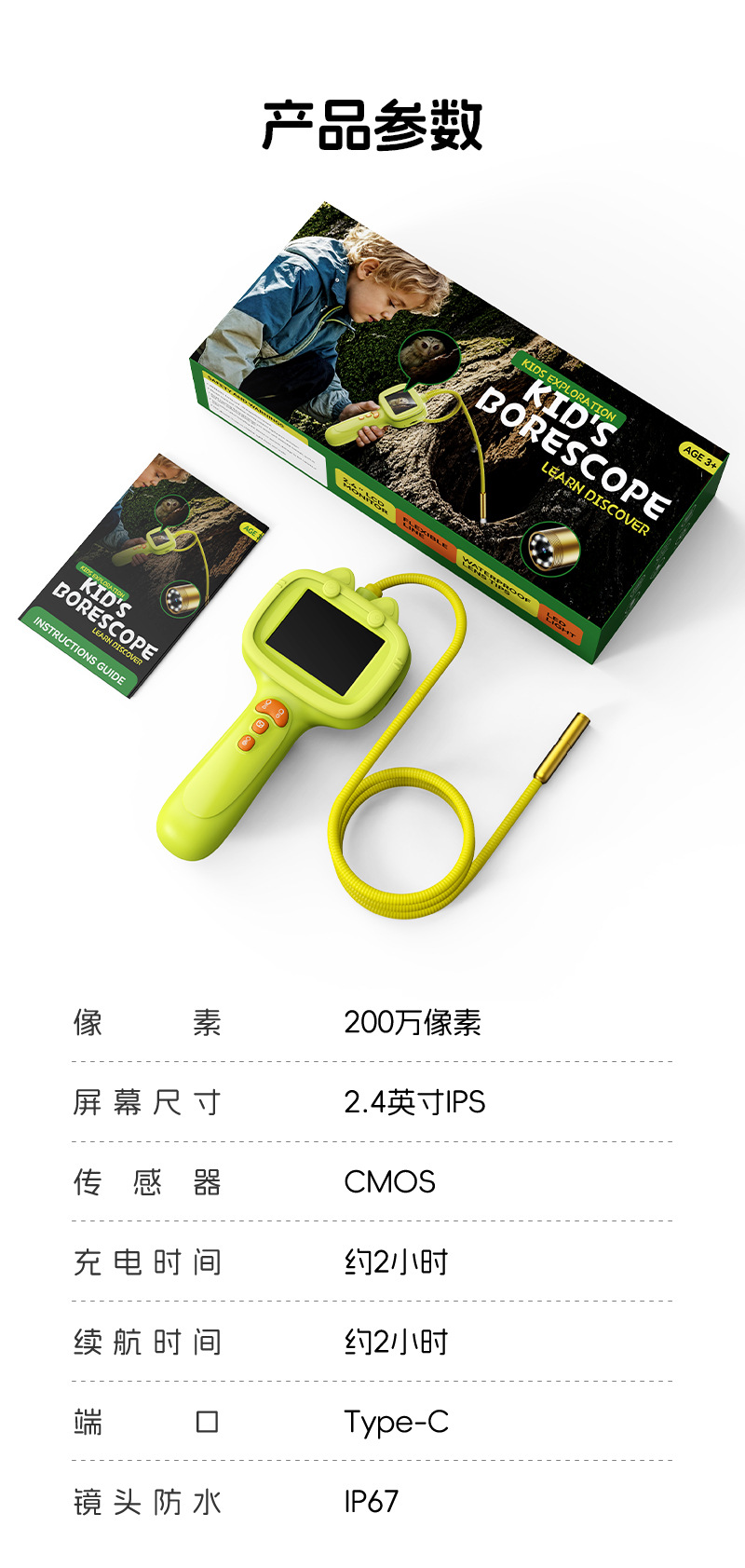 Новая детская портативная игрушка для научных экспериментов с экраном 2.4inch года, 2-мегапиксельный HD-эндоскоп с макросъемкой