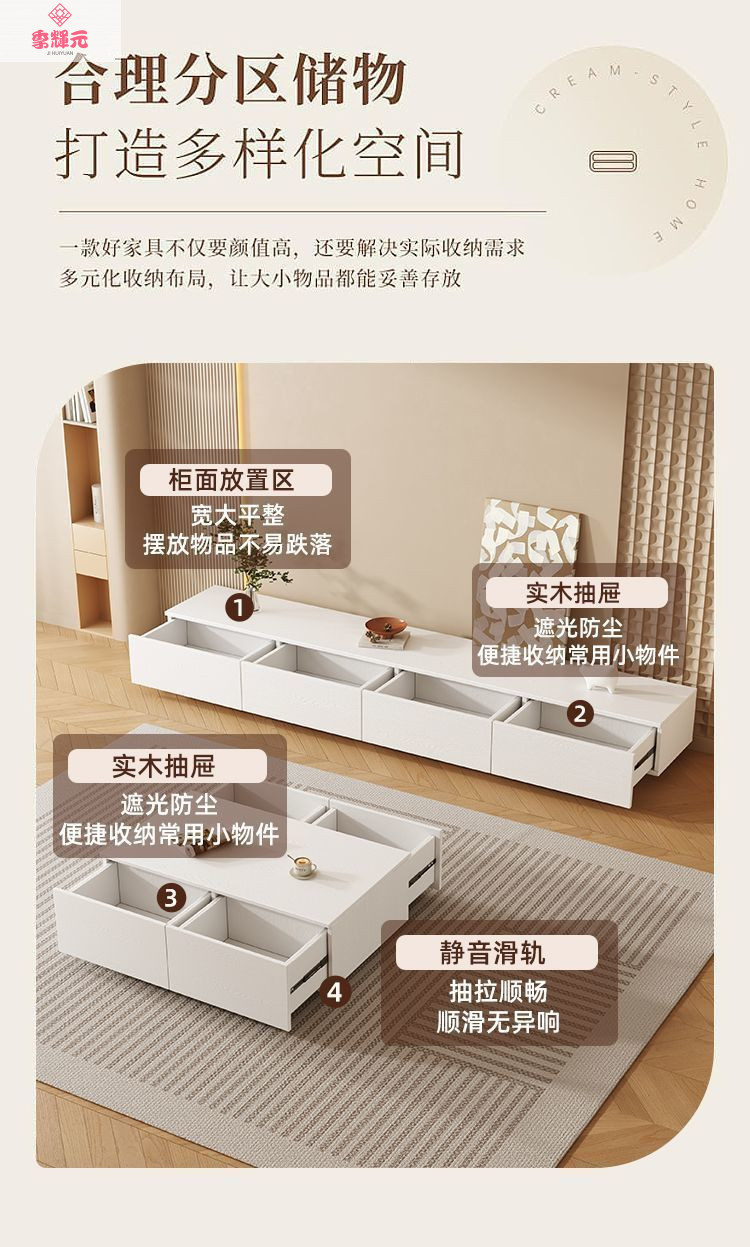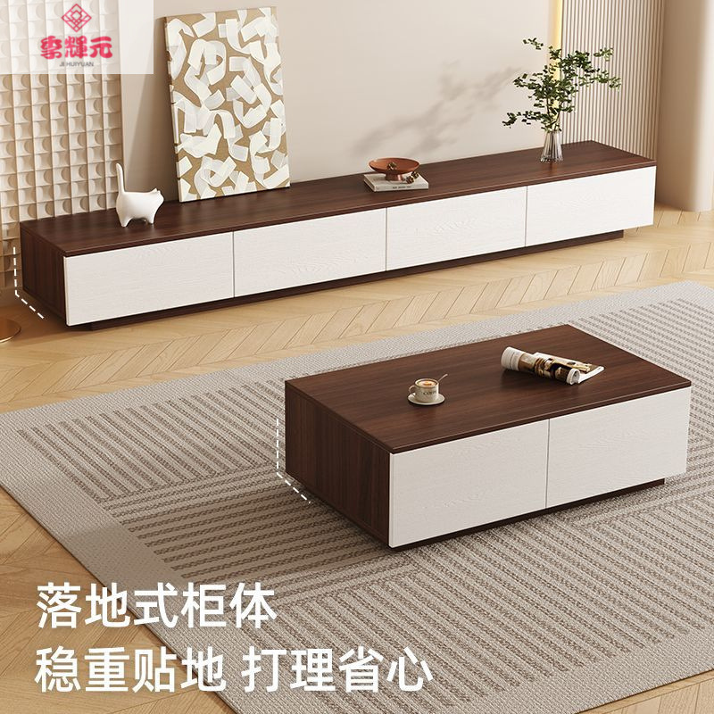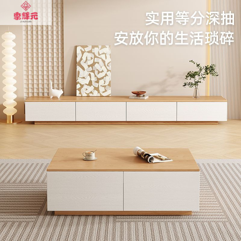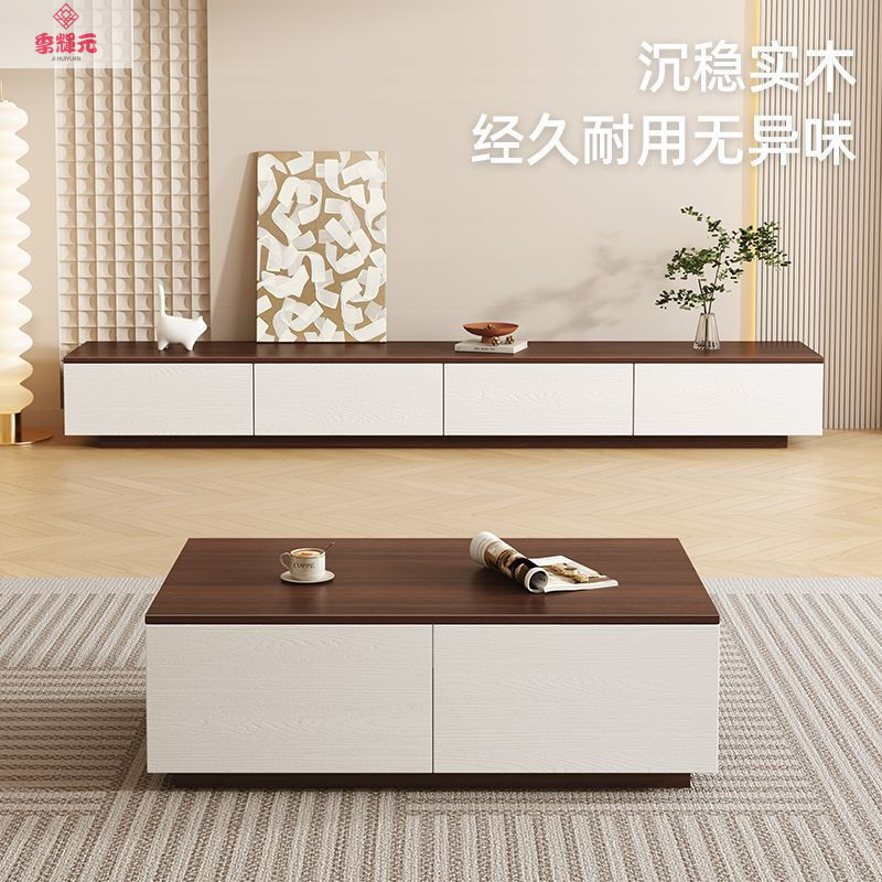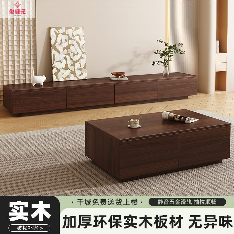 Комбинированный шкаф для телевизора из цельного дерева, простой светильник, роскошный стиль, гостиная, маленькая квартира, журнальный столик из цельного дерева без краски с ящиками, напольный новый стиль