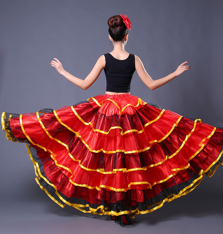 Новая в наличии испанская танцевальная юбка для танцев с большим подъемом, юбка для танцев в стиле корриды, современный танцевальный костюм для выступления на сцене.