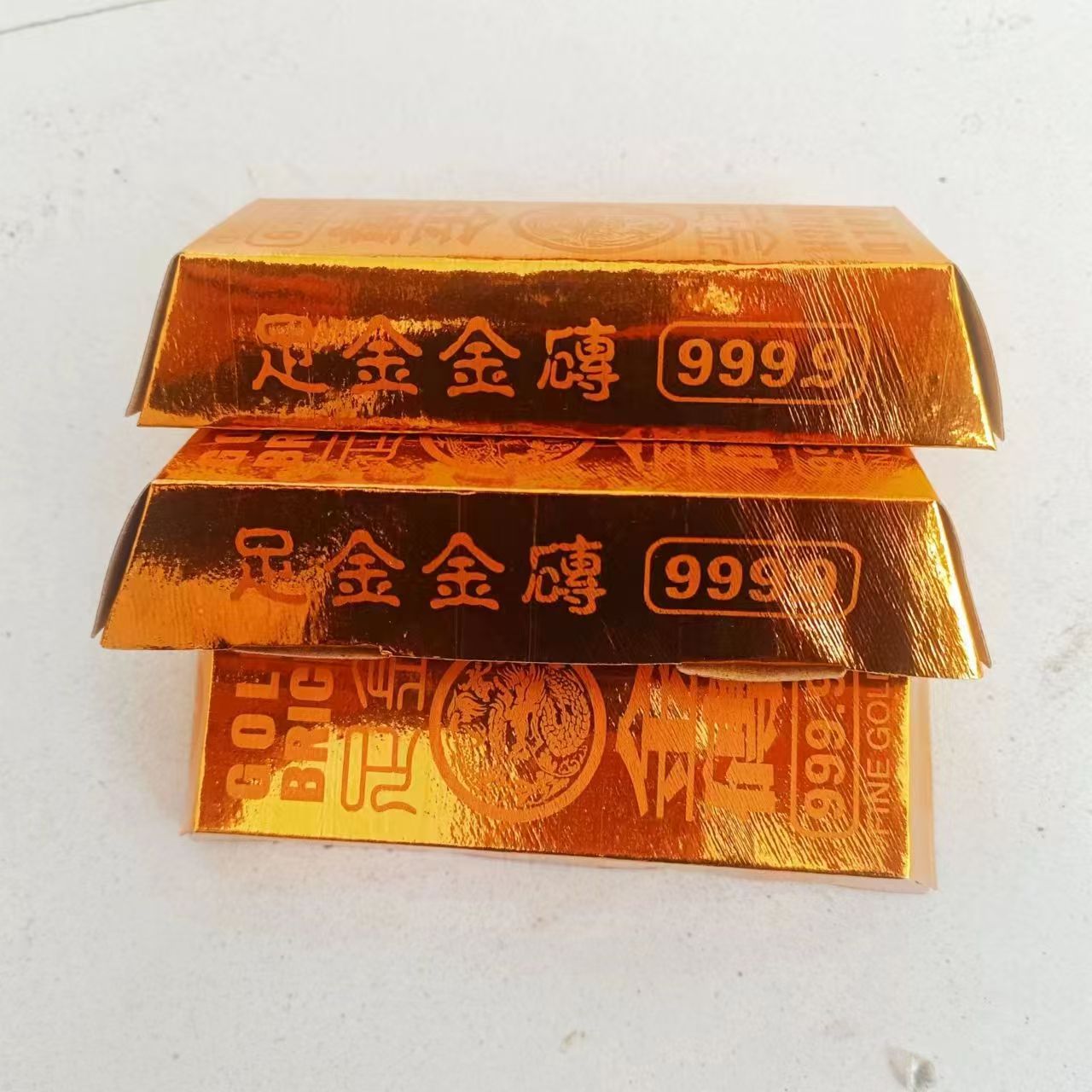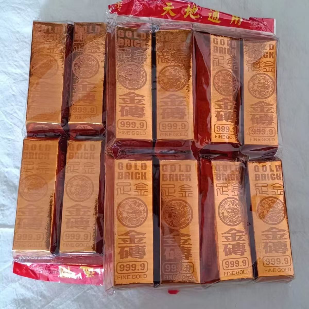 Готовые золотые слитки, золотые бруски, слитки, обожженная бумага, желтая бумага, обряд поклонения предкам на фестивале середины осени, благовония, свечи, бумажные изделия, золото и серебро.