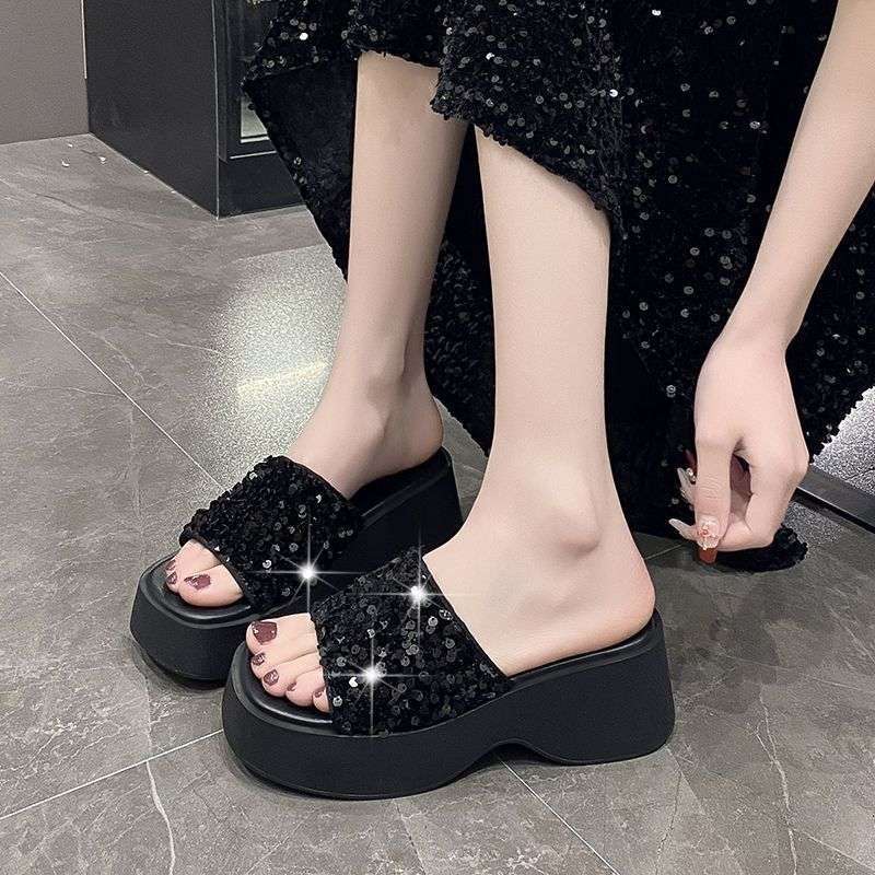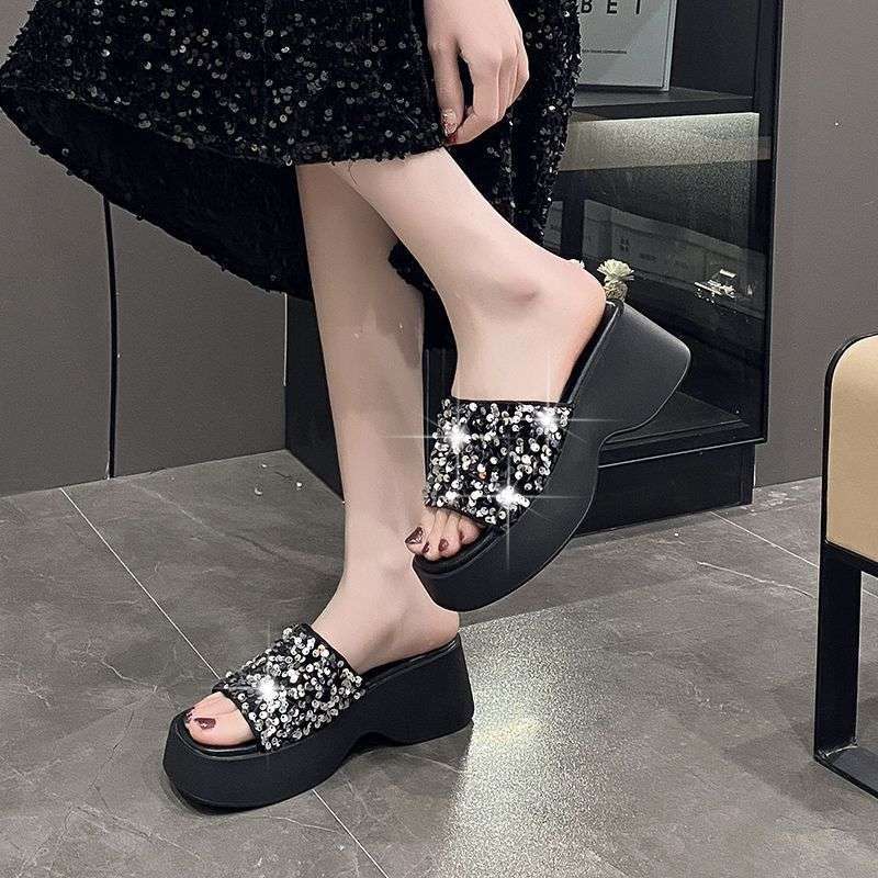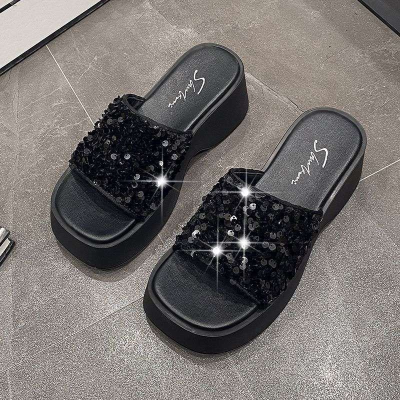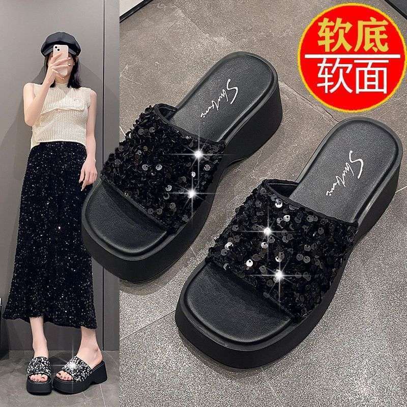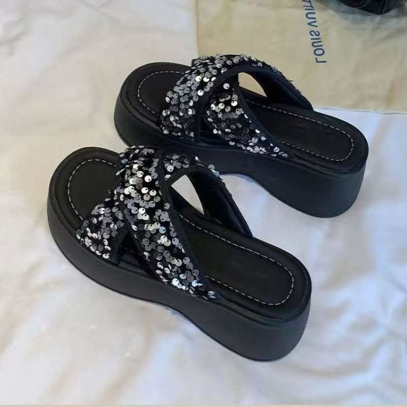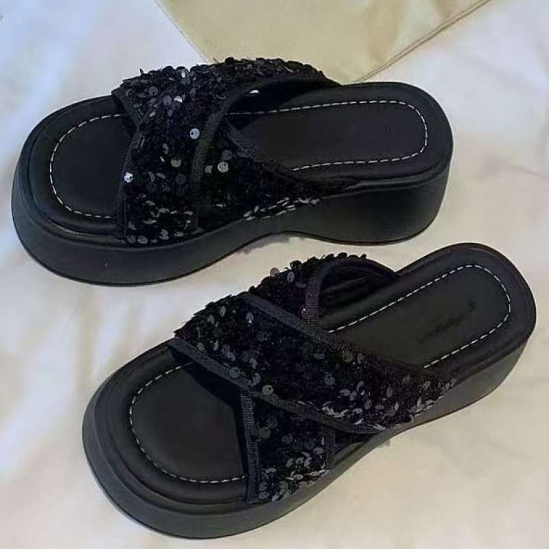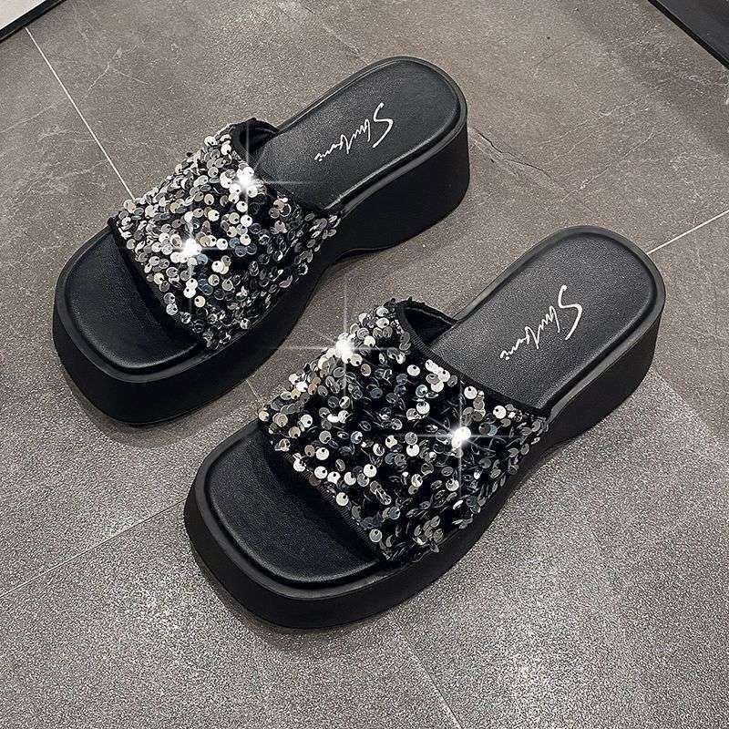Плоская подошва с толстым дном, тапочка женский 2025 пустоши, дикие стильные блестки, склоны и водонепроницаемые противоскользящие тапочки