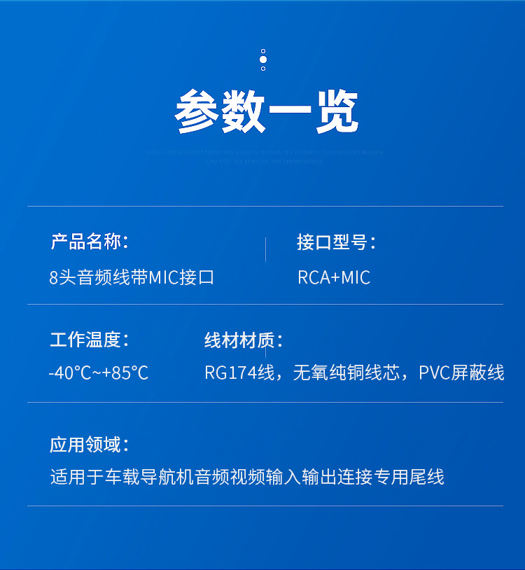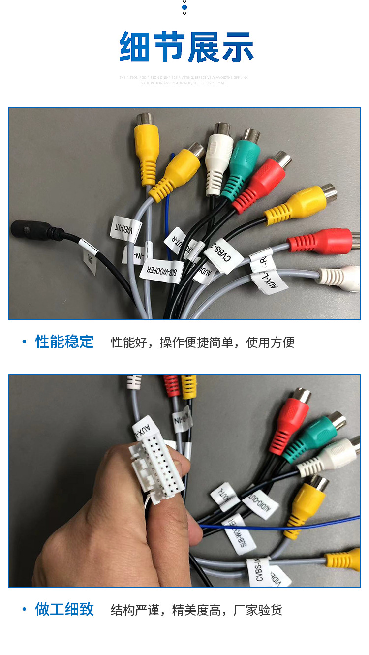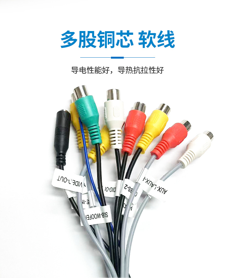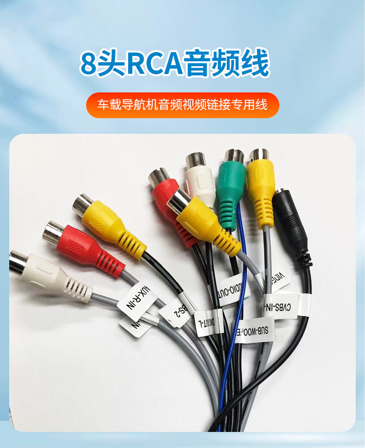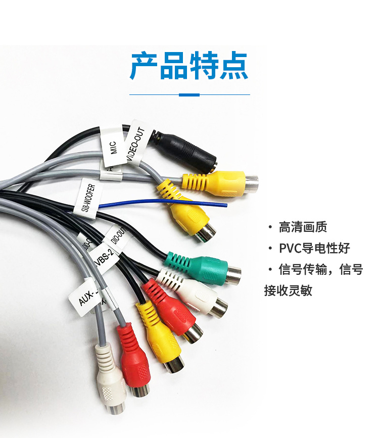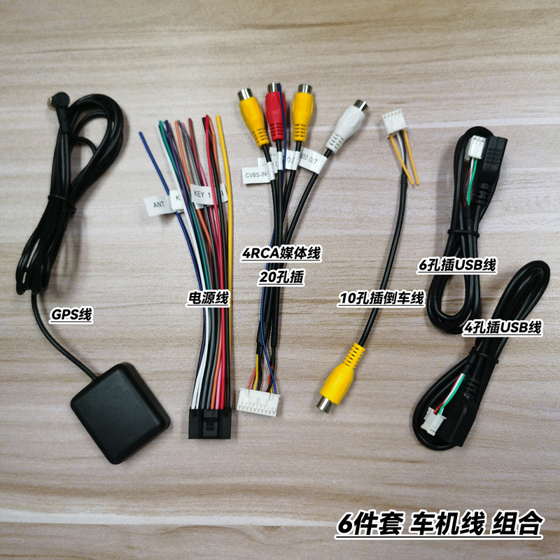 10-контактный обратный видеокабель; 6-контактный USB; 4-контактный USB; Навигационная GPS-антенна; Автомобильный аудиокабель 4RCA; Автомобильный аудиокабель 7RCA; Стандартный медный шнур питания 16P 5; Интерфейс вентилятора 4RCA+; 7RCA+интерфейс вентилятора+микрофон; 8rca+mic