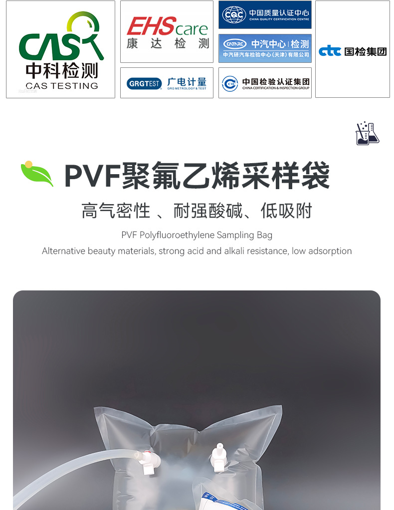 Газоотборный мешок Zhongpu Xingju из фторполивинилидена (ПВФ) для определения общего содержания неуглеводных газов (ГНГ) и общей нефтяной и газовой фракции (ГНГФ) в газах, не содержащих метан, HJ732-2025