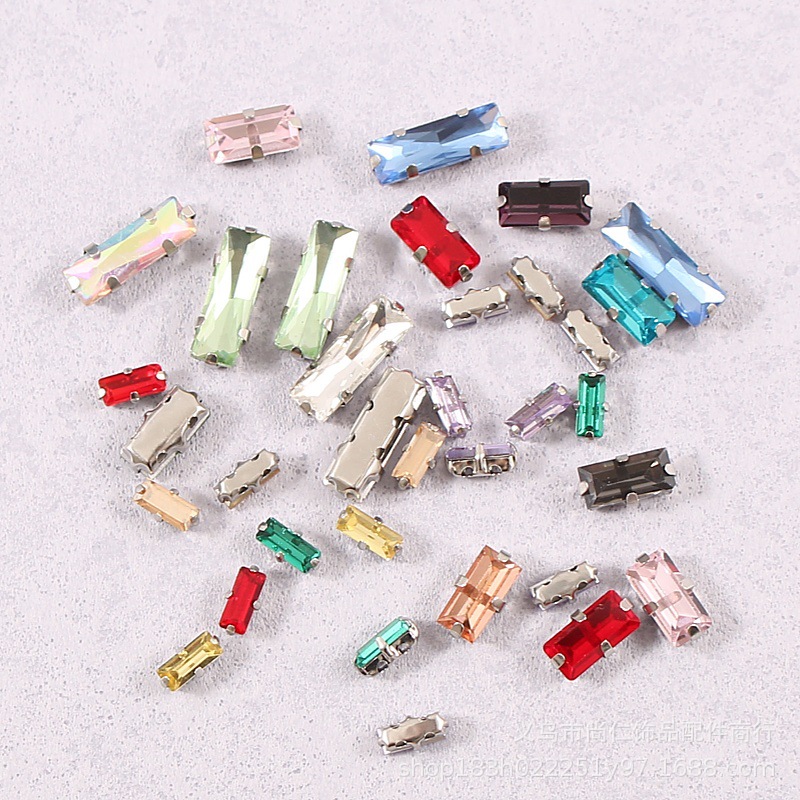 Прямоугольные стразы с двумя ушками и четырьмя отверстиями, сшитые вручную стразы с четырьмя зубцами, одежда, обувь и шляпы «сделай сам», свадебное платье, коготь, стразы, ювелирные аксессуары, материалы