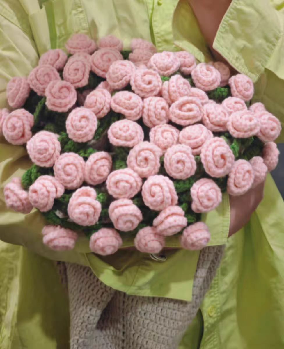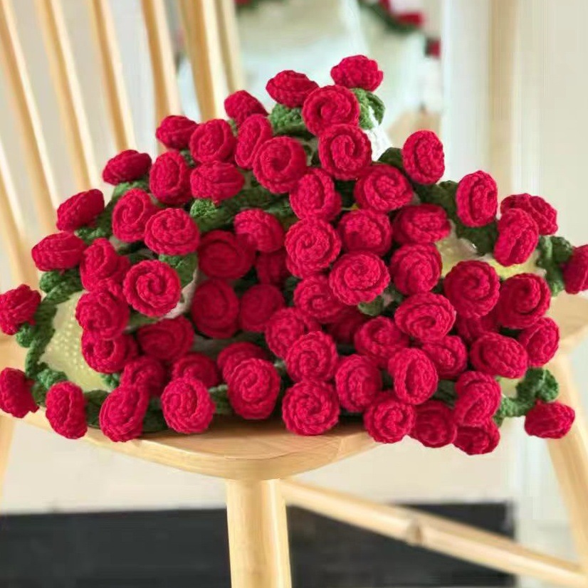 520 День Святого Валентина Подарок Подарок Роза Букет Одеяло Готовые шерстяные шарики ручной работы