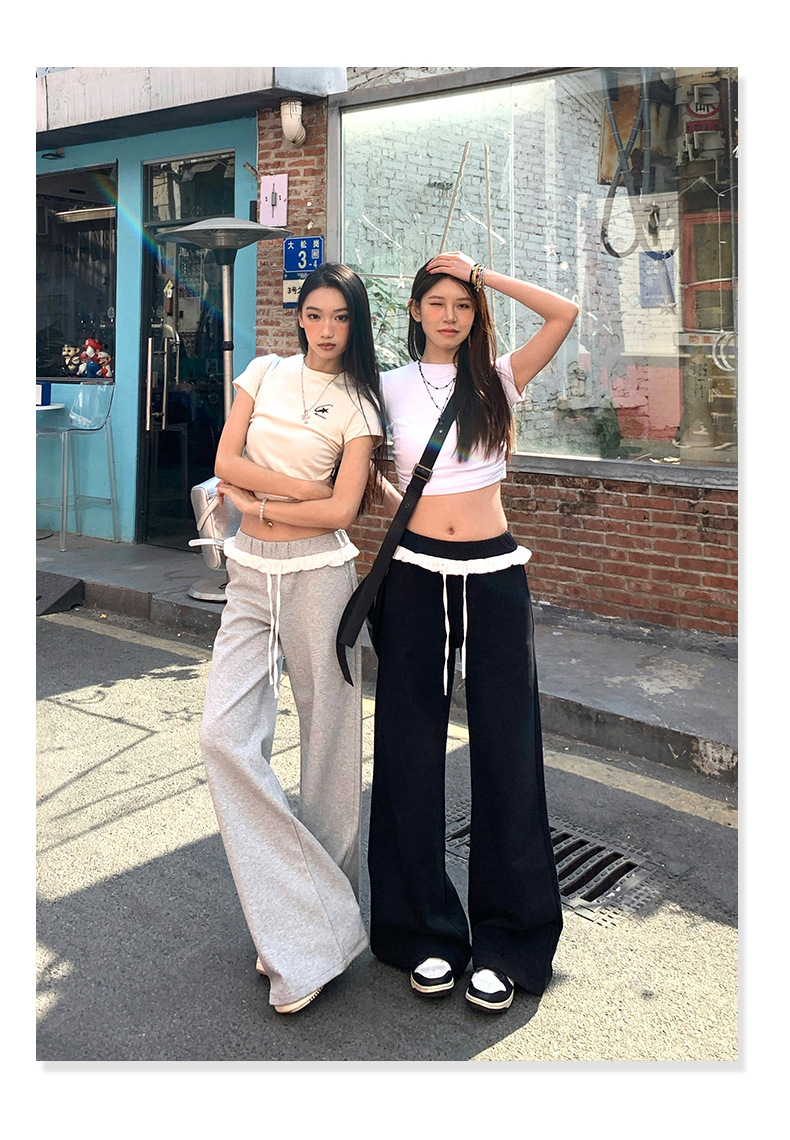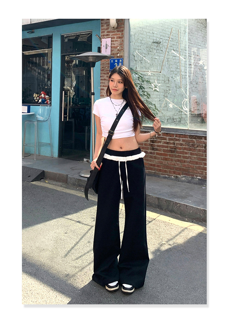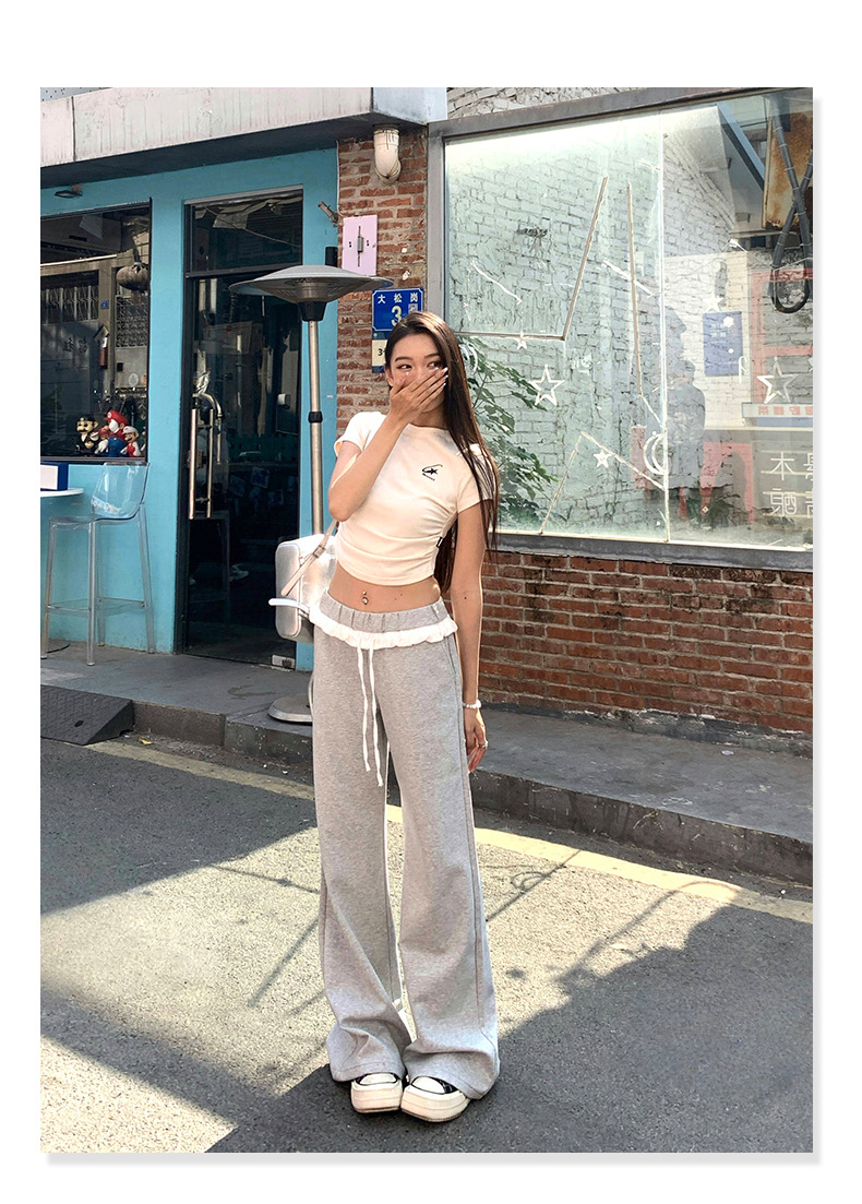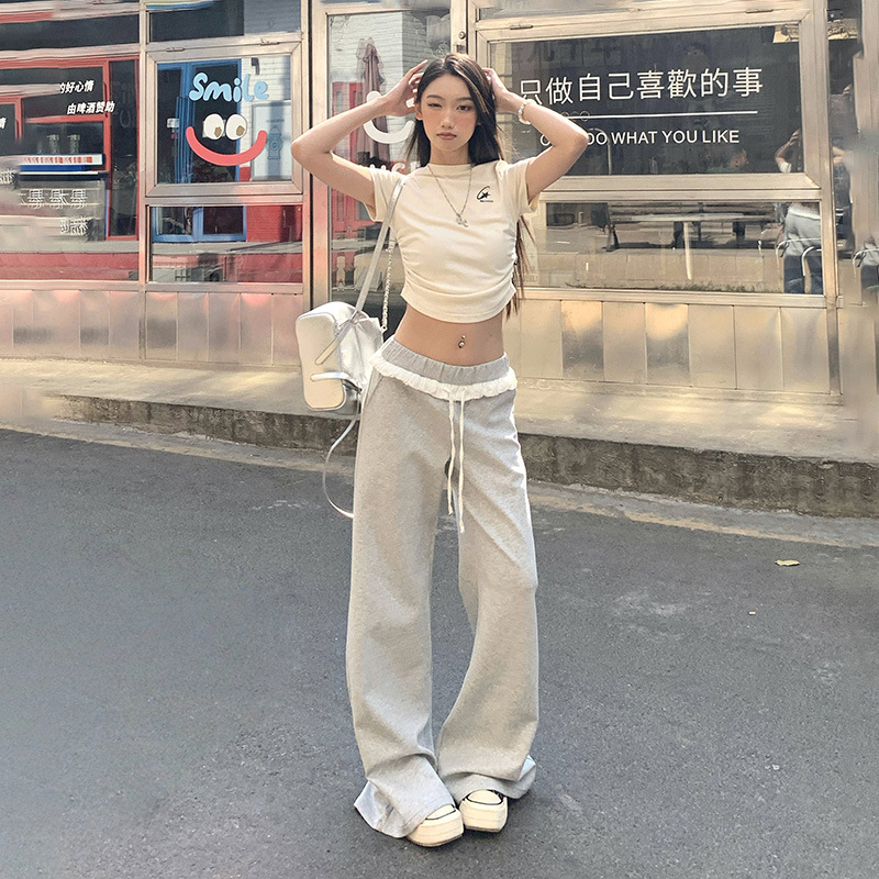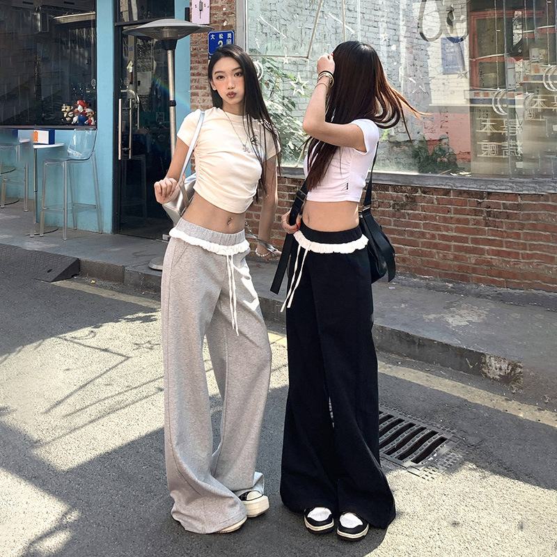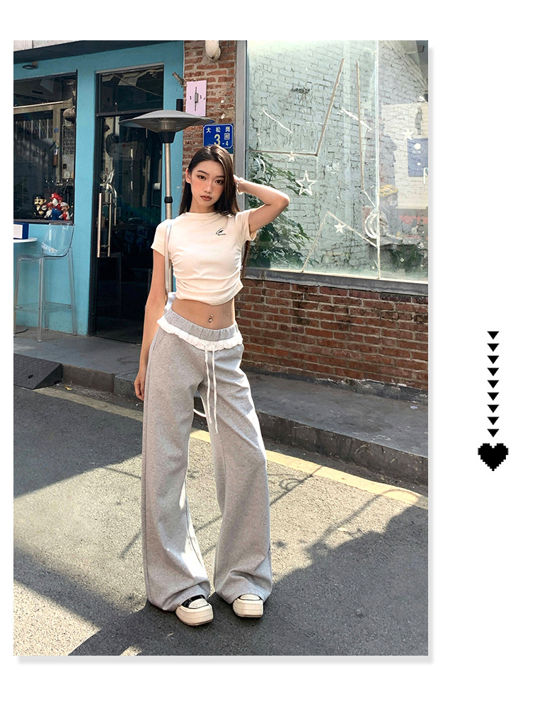 25 лет новые спортивные брюки с кружевной отделкой, цветными блоками, эластичной талией, драпировкой, слегка свободные расклешенные повседневные штаны