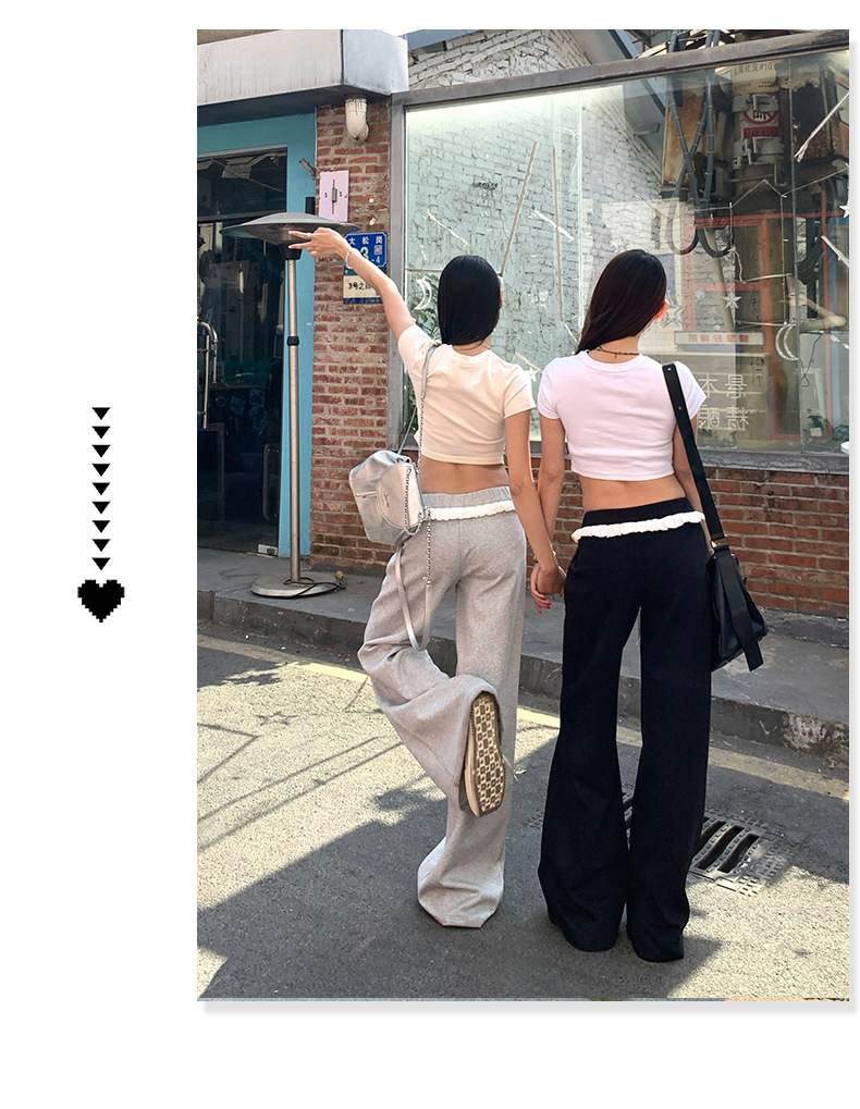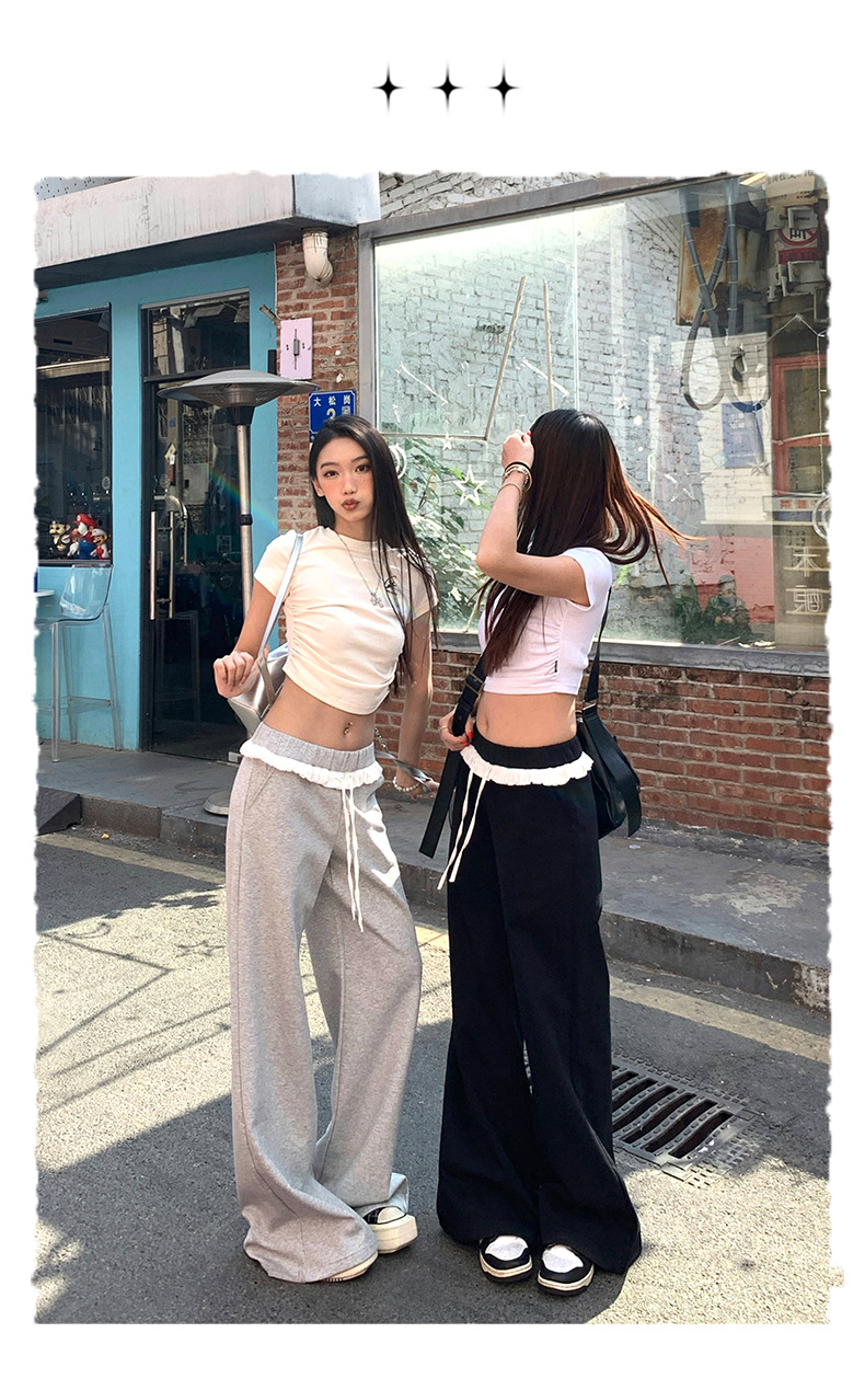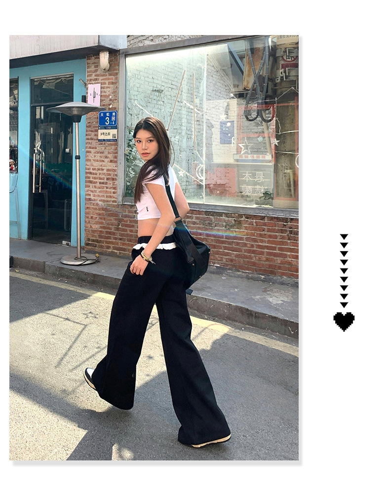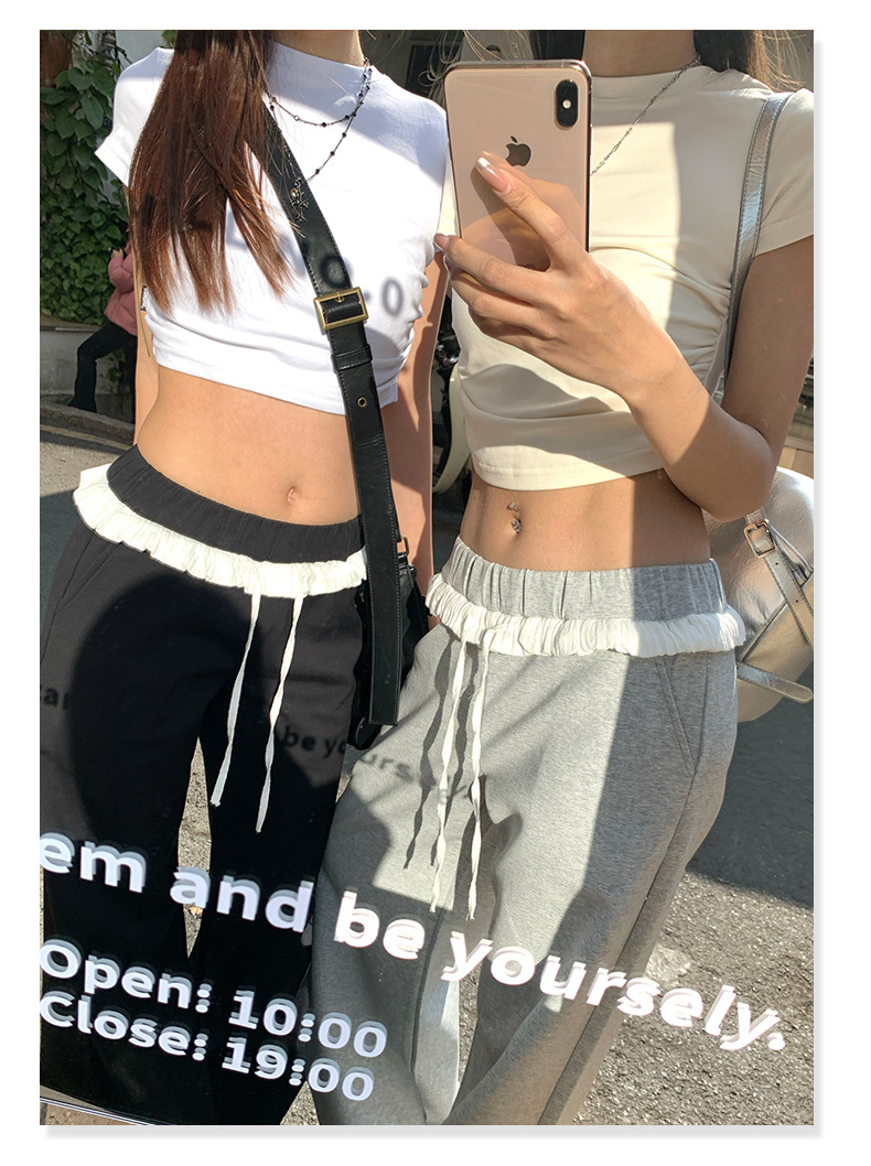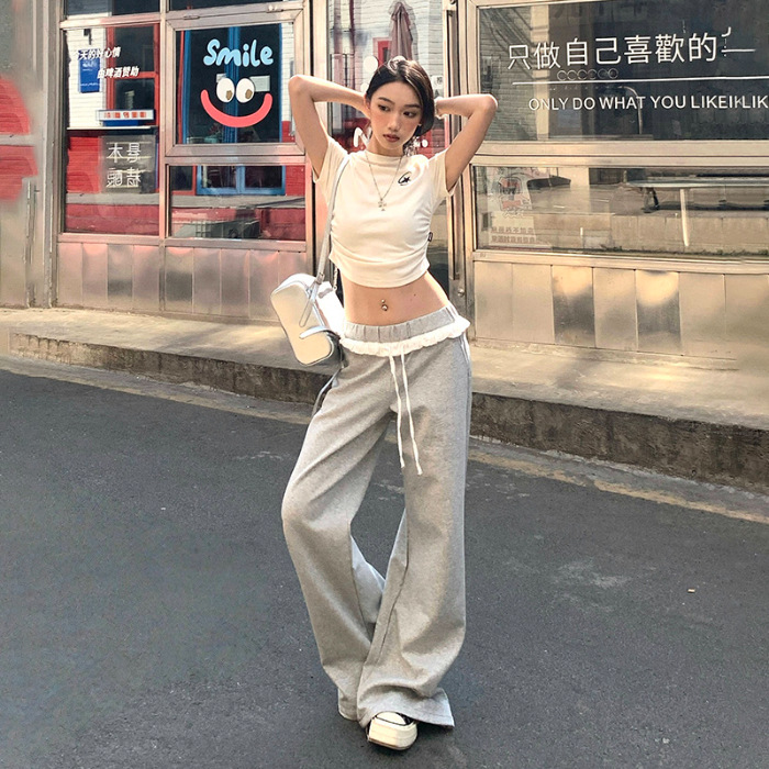25 лет новые спортивные брюки с кружевной отделкой, цветными блоками, эластичной талией, драпировкой, слегка свободные расклешенные повседневные штаны