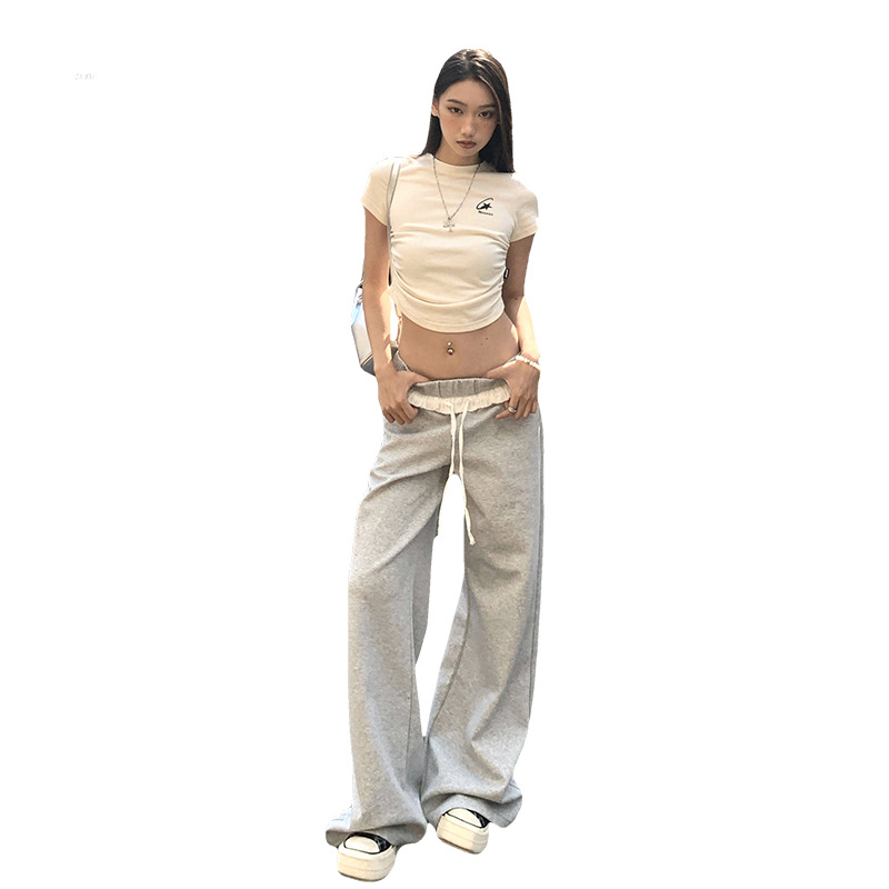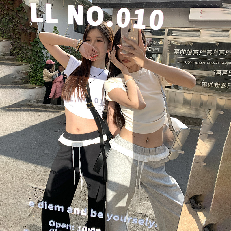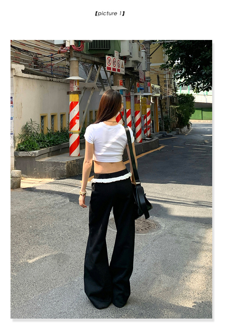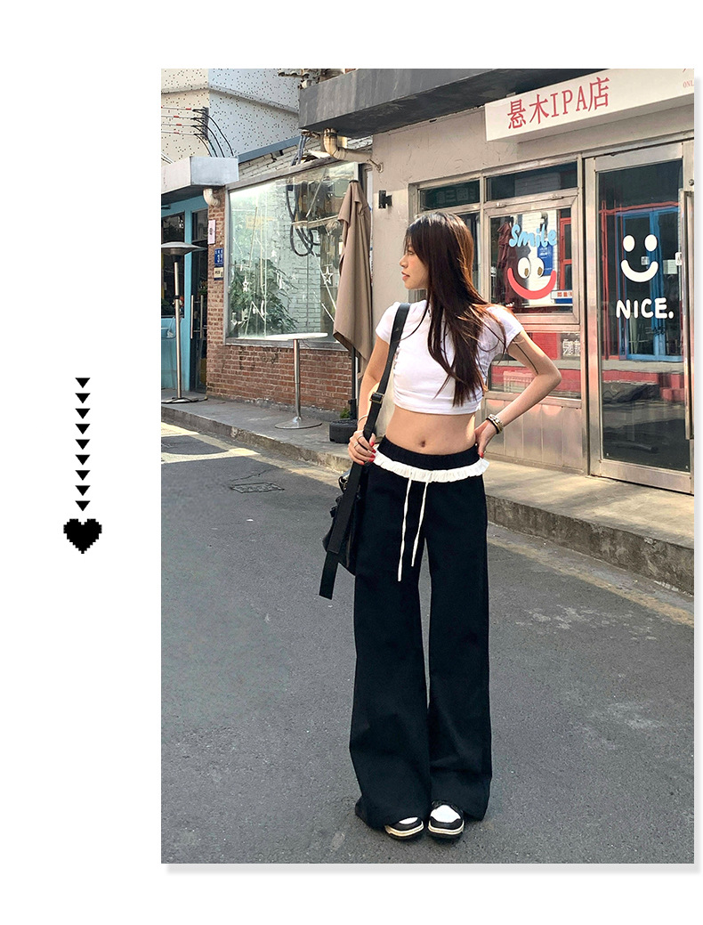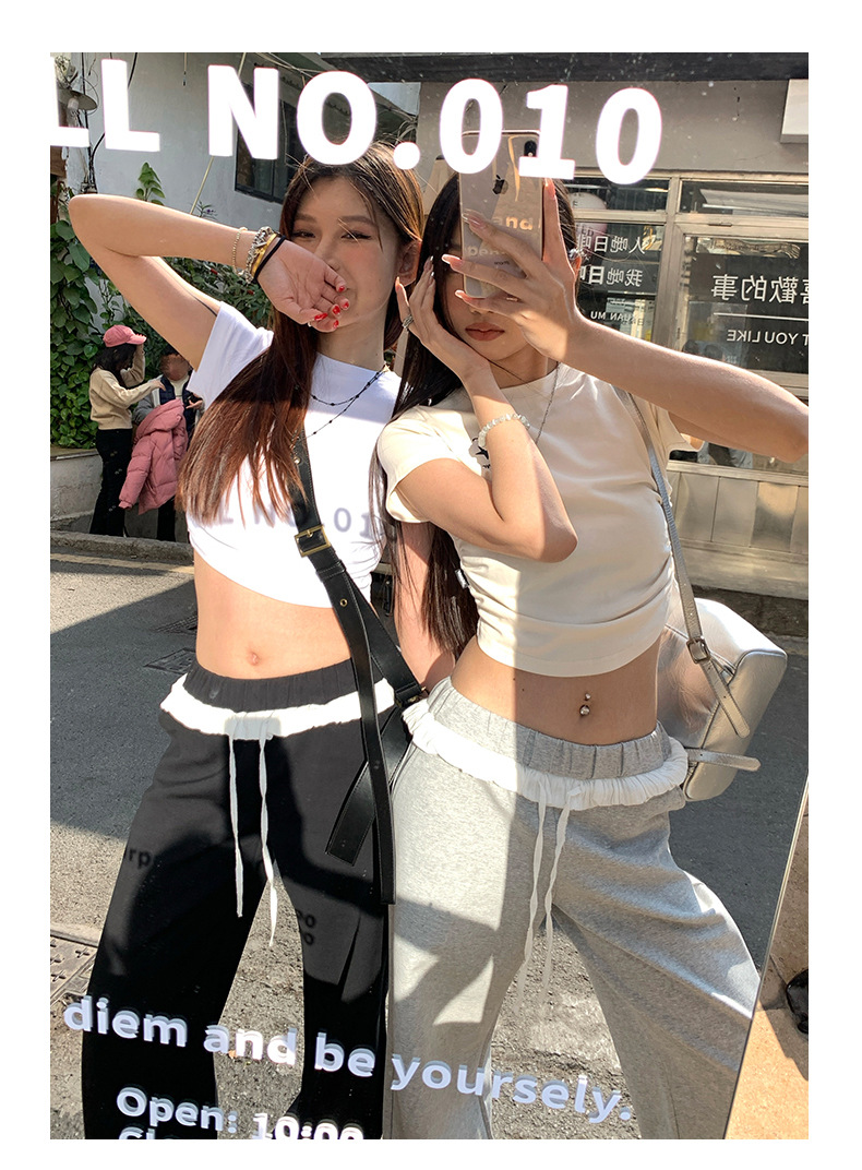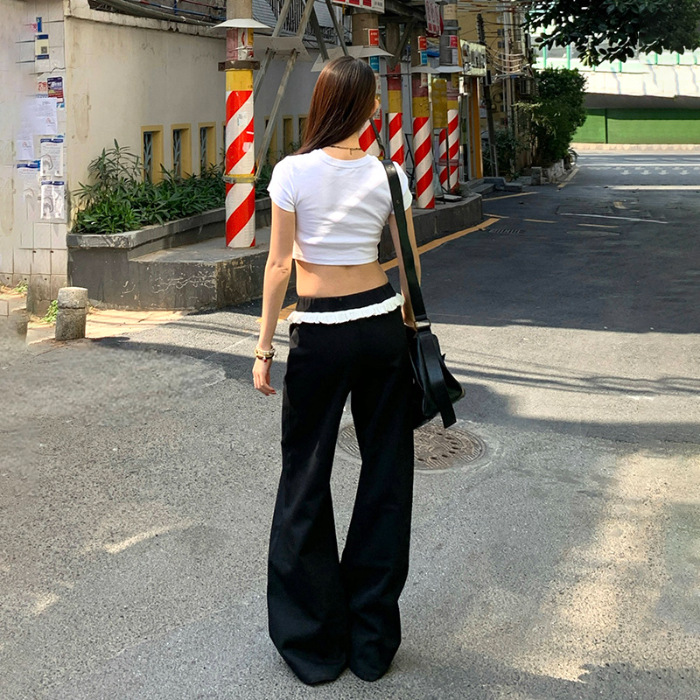 25 лет новые спортивные брюки с кружевной отделкой, цветными блоками, эластичной талией, драпировкой, слегка свободные расклешенные повседневные штаны