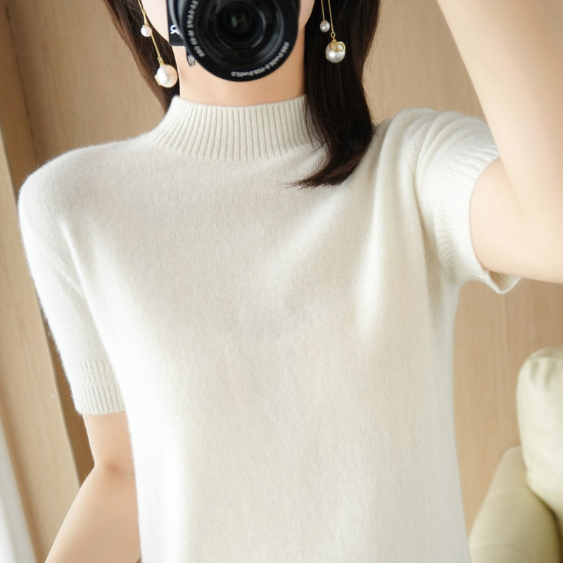 Весенне-летний новый стиль, пуловер с полугольфом, шерстяной свитер, свитер с короткими рукавами, женская свободная рубашка с половиной рукавов в корейском стиле, оптовая продажа