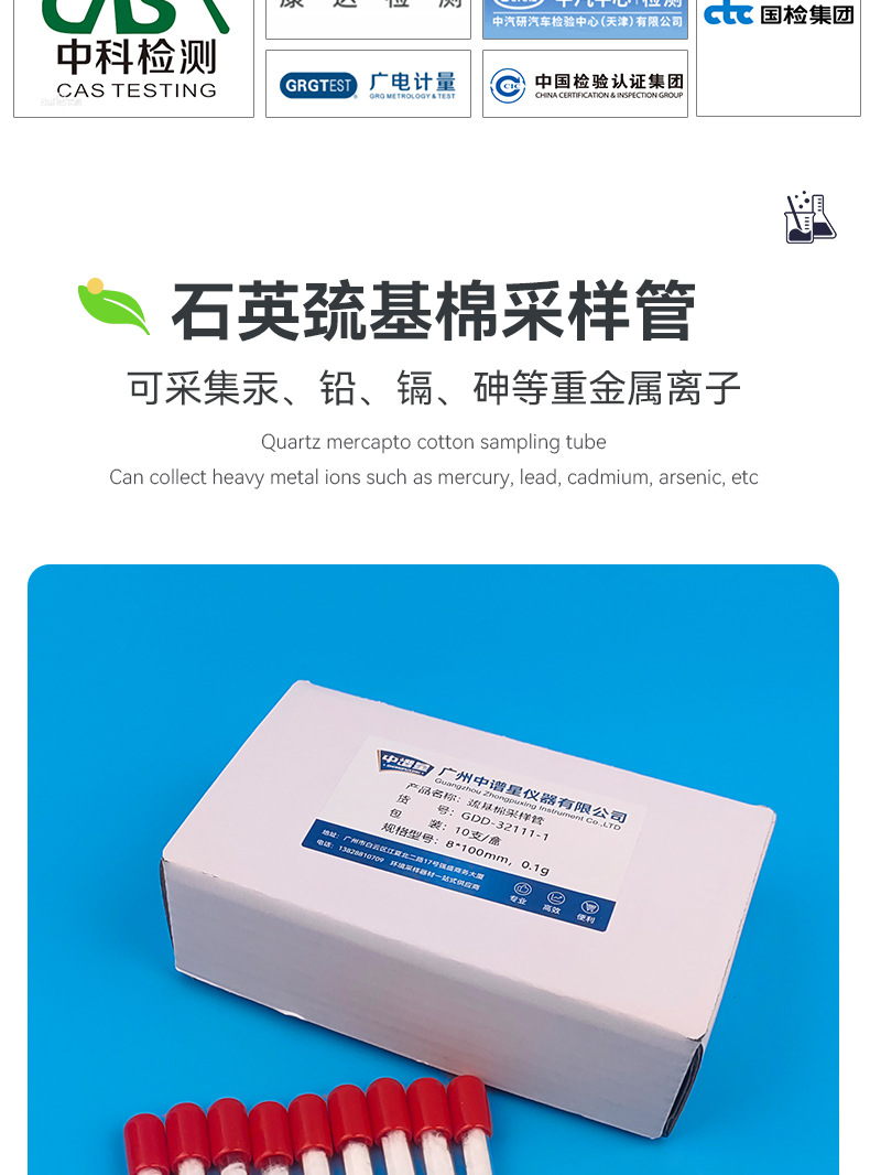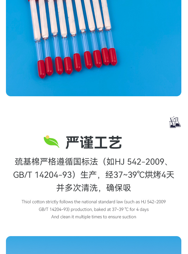 Кварцевая тиолированная хлопчатобумажная пробирка для определения общей концентрации ртути и метилмеркаптана в окружающем воздухе, адсорбционная пробирка для качества воды с арилмеркаптаном.
