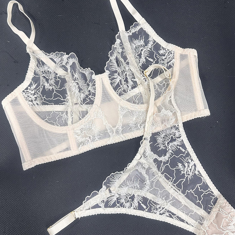 Кросс-бордерное сексуальное нижнее белье, тонкое кружевное, прозрачное, больших размеров, для пышной груди, в стиле топа, с косточками.
