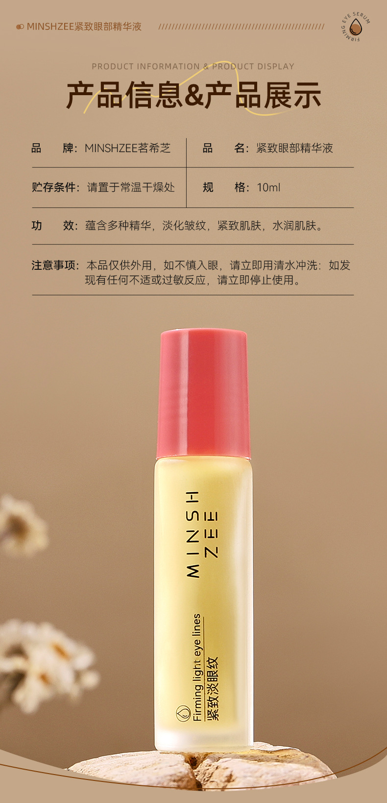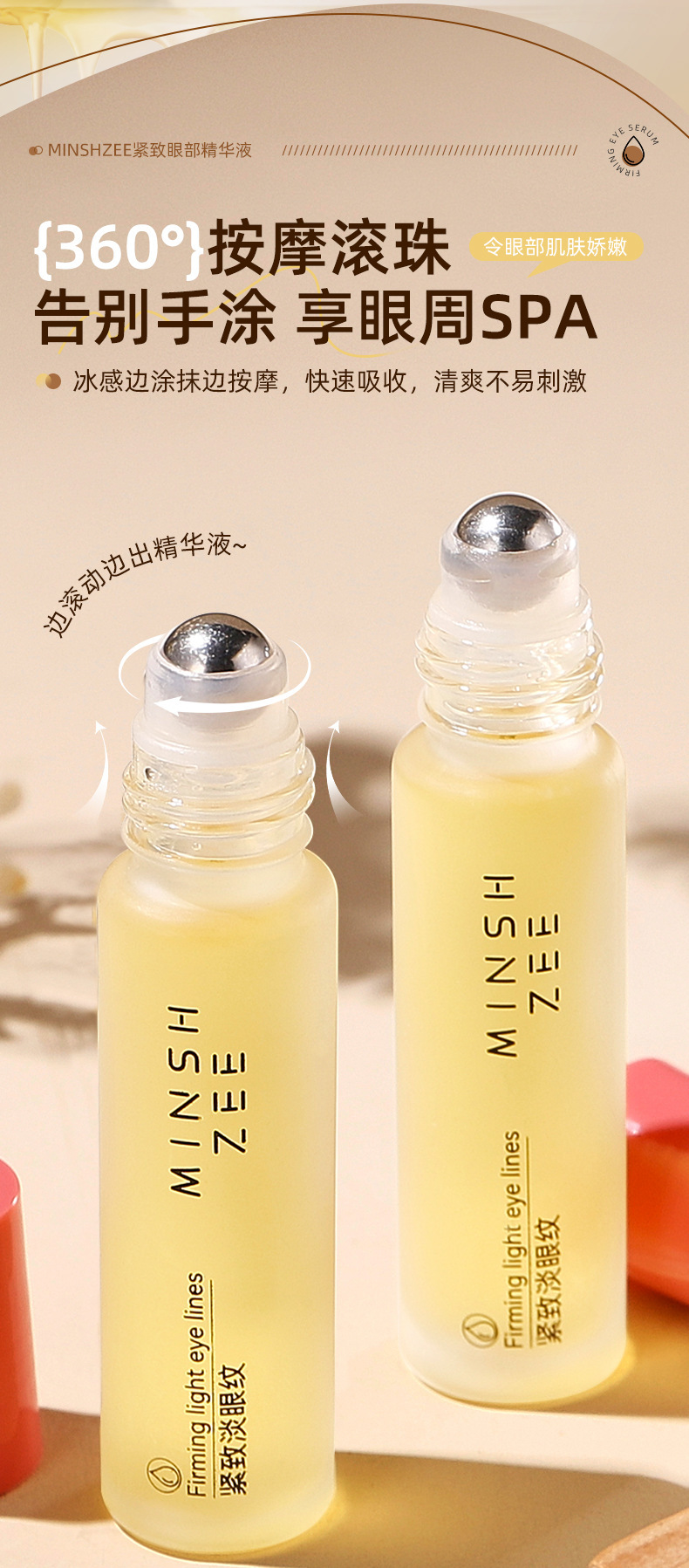 Эссенция для глаз Ming Xizhi Увлажняющее, увлажняющее, осветляющее и против морщин Эфирное масло для ухода за глазами Роликовый шарик Массажное масло для глаз Трансграничное