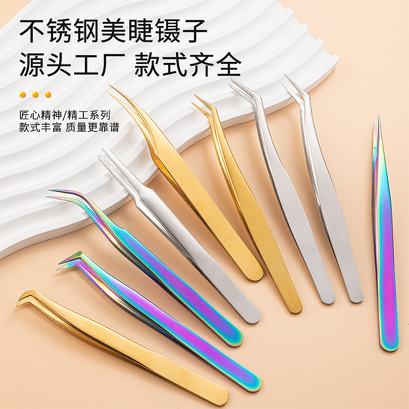 Пинцеты для ресниц из нержавеющей стали, пинцеты для пересаженных ресниц, пинцеты для ресниц, золотые зажимы для цветущих перьев, щипцы для завивки накладных ресниц, косметические инструменты