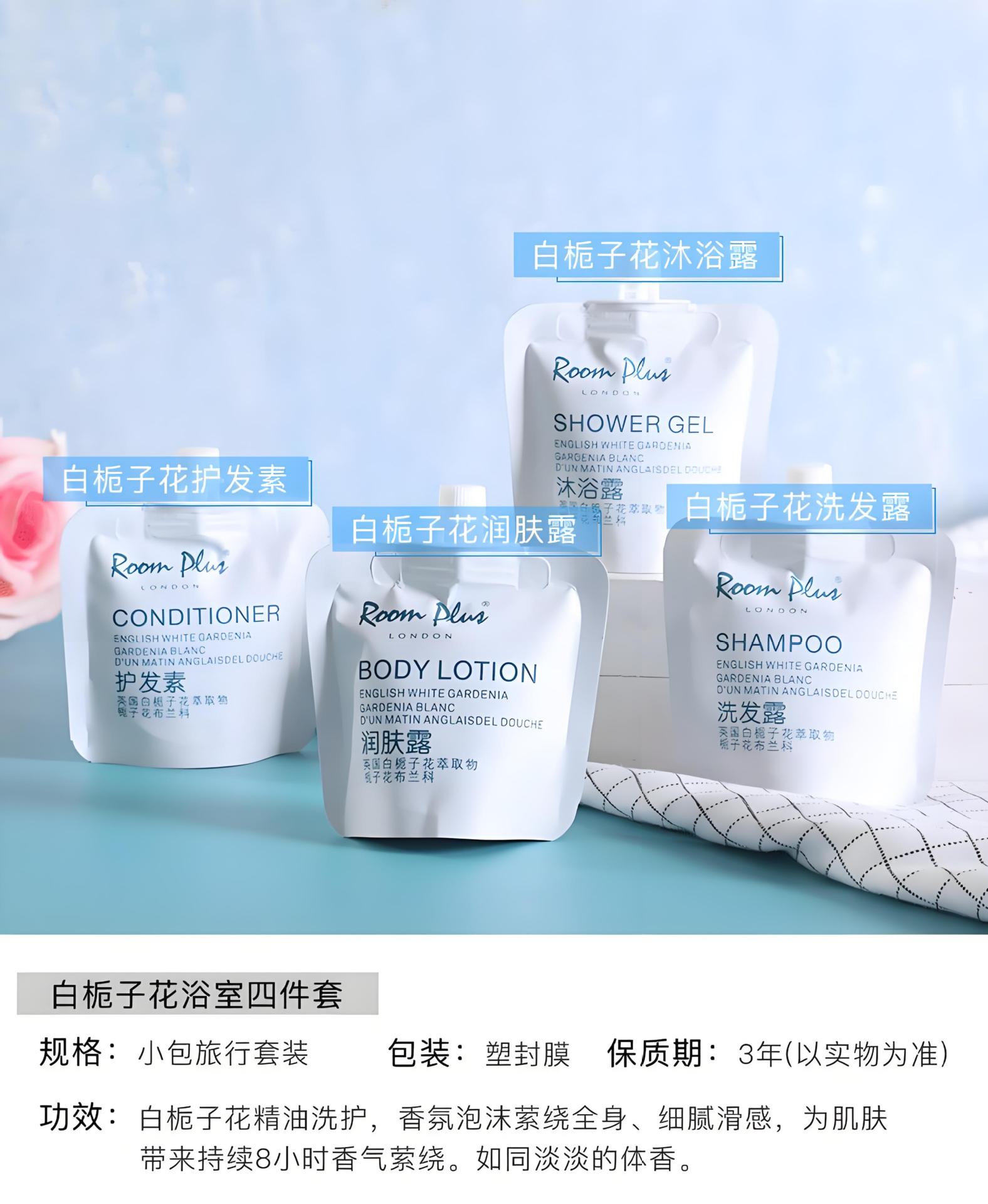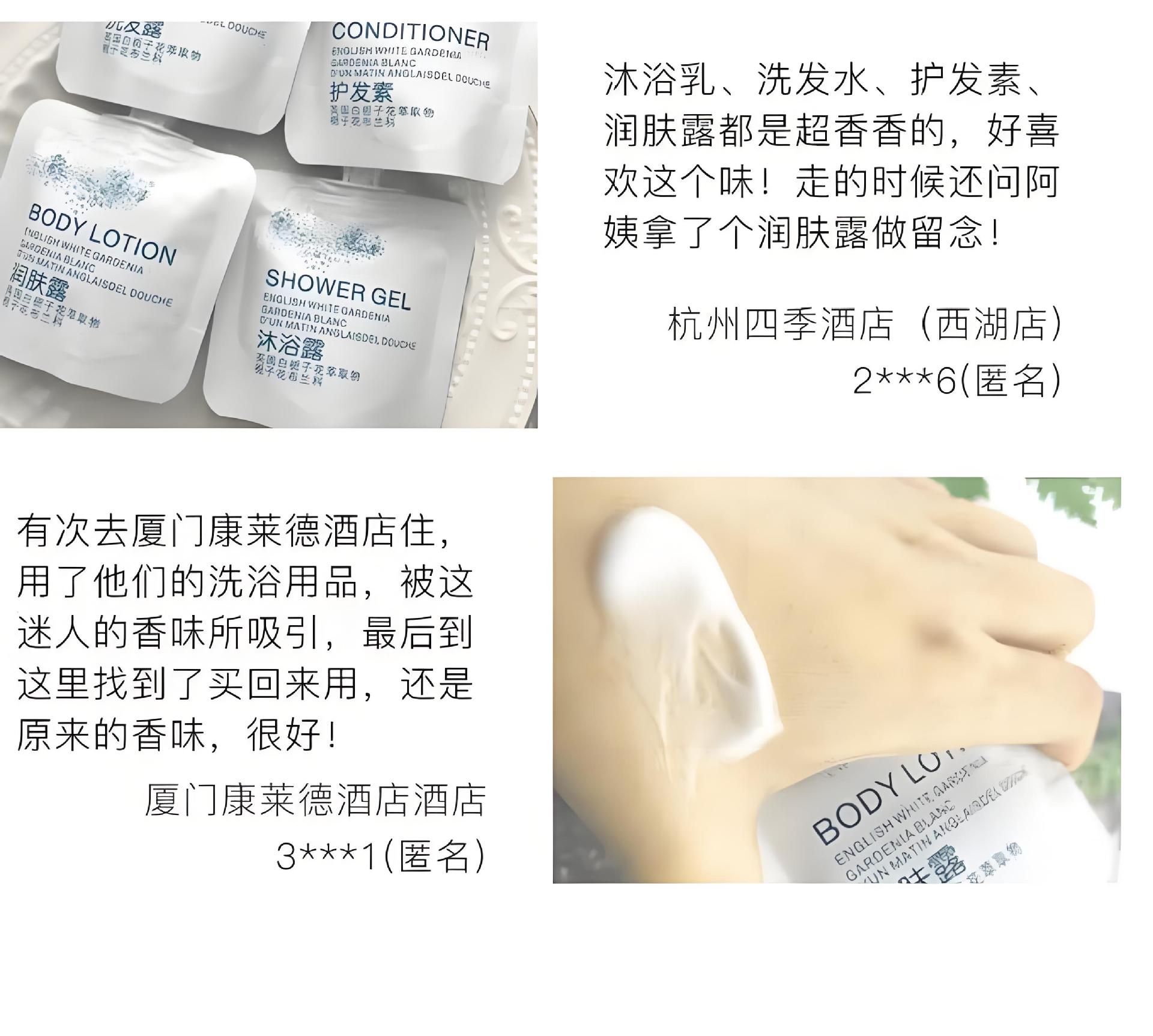 Пятизвездочный отель, стильный B&B, портативный шампунь, кондиционер и гель для душа в стиле Gardenia Care, удобный для путешествий.
