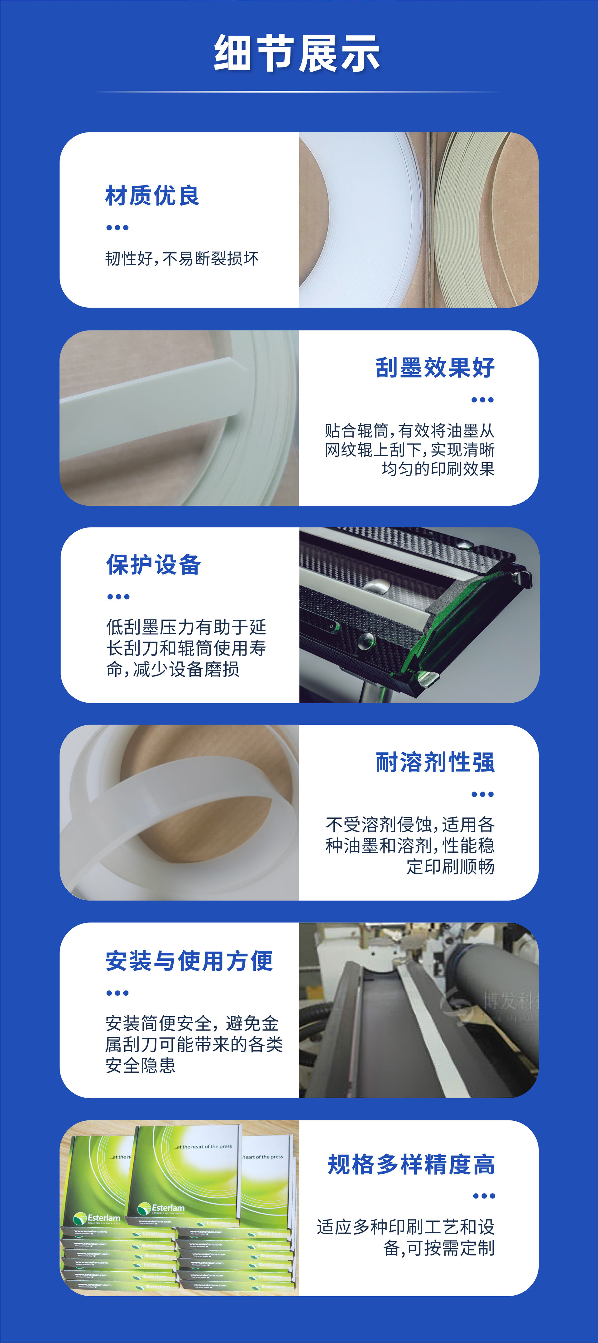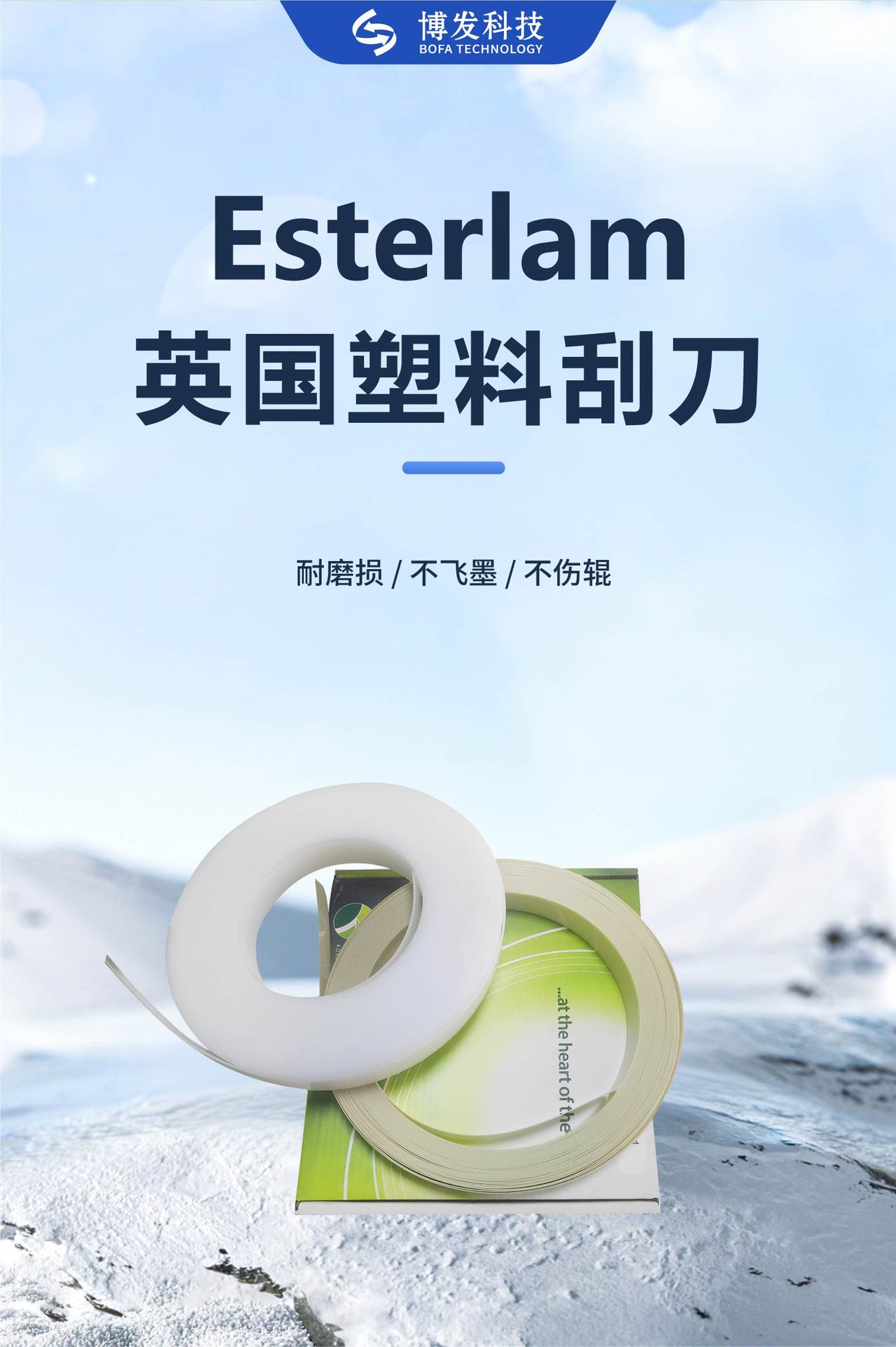 Скребок пластиковый Esterlam для офсетной печати, для низкотемпературных покрытий, износостойкий, для низкого давления