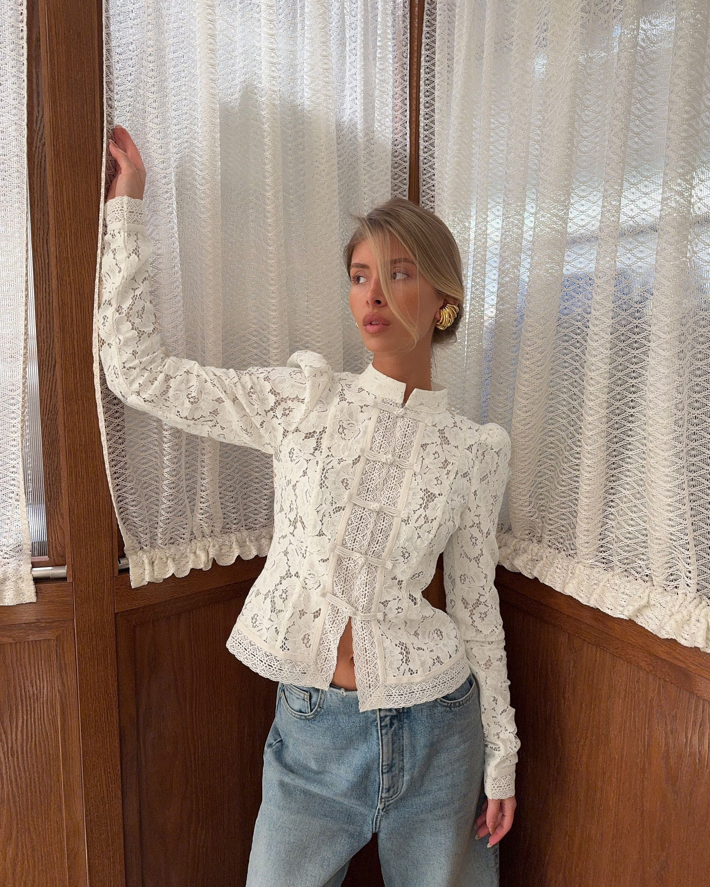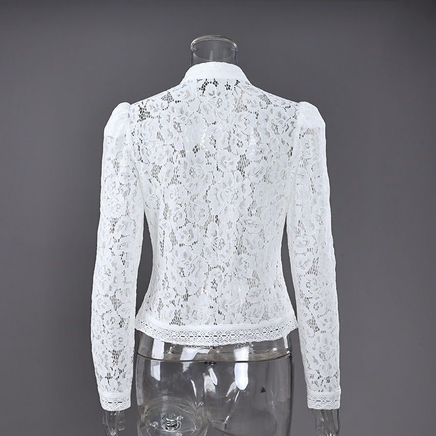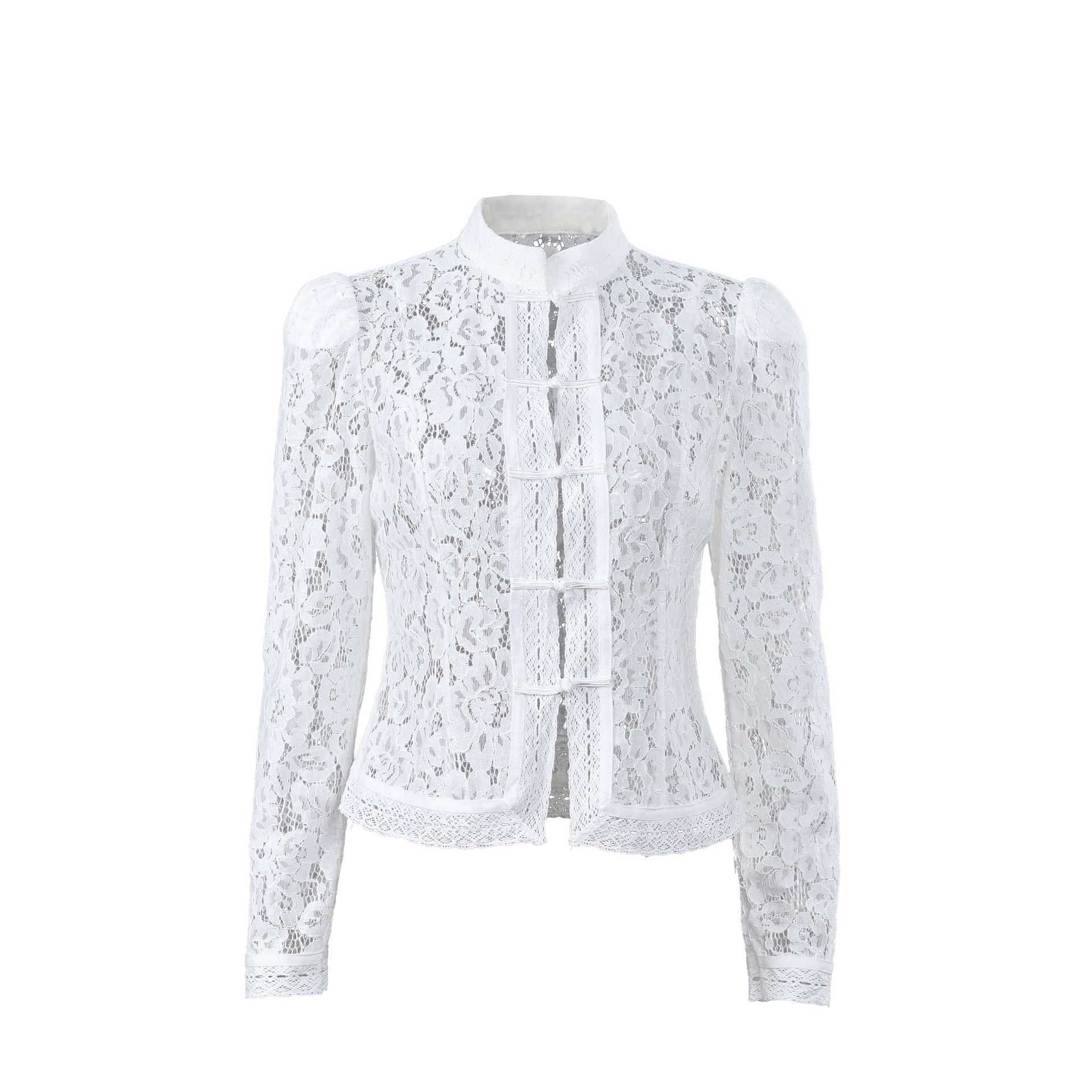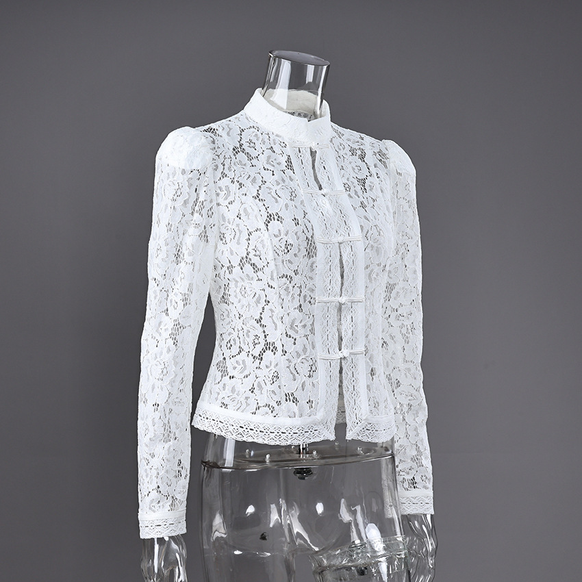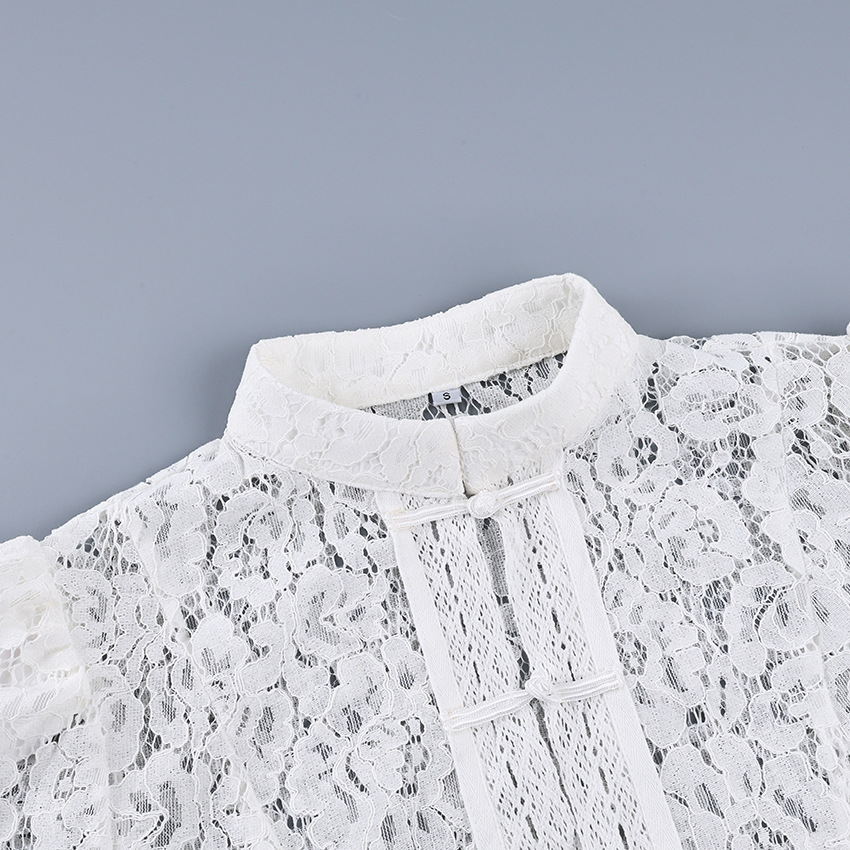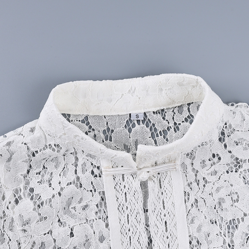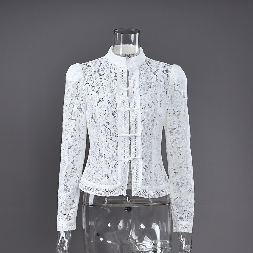 2025 летний кружевной крючок воротник стойка облегающих рубашек женский дизайн стильный темперамент