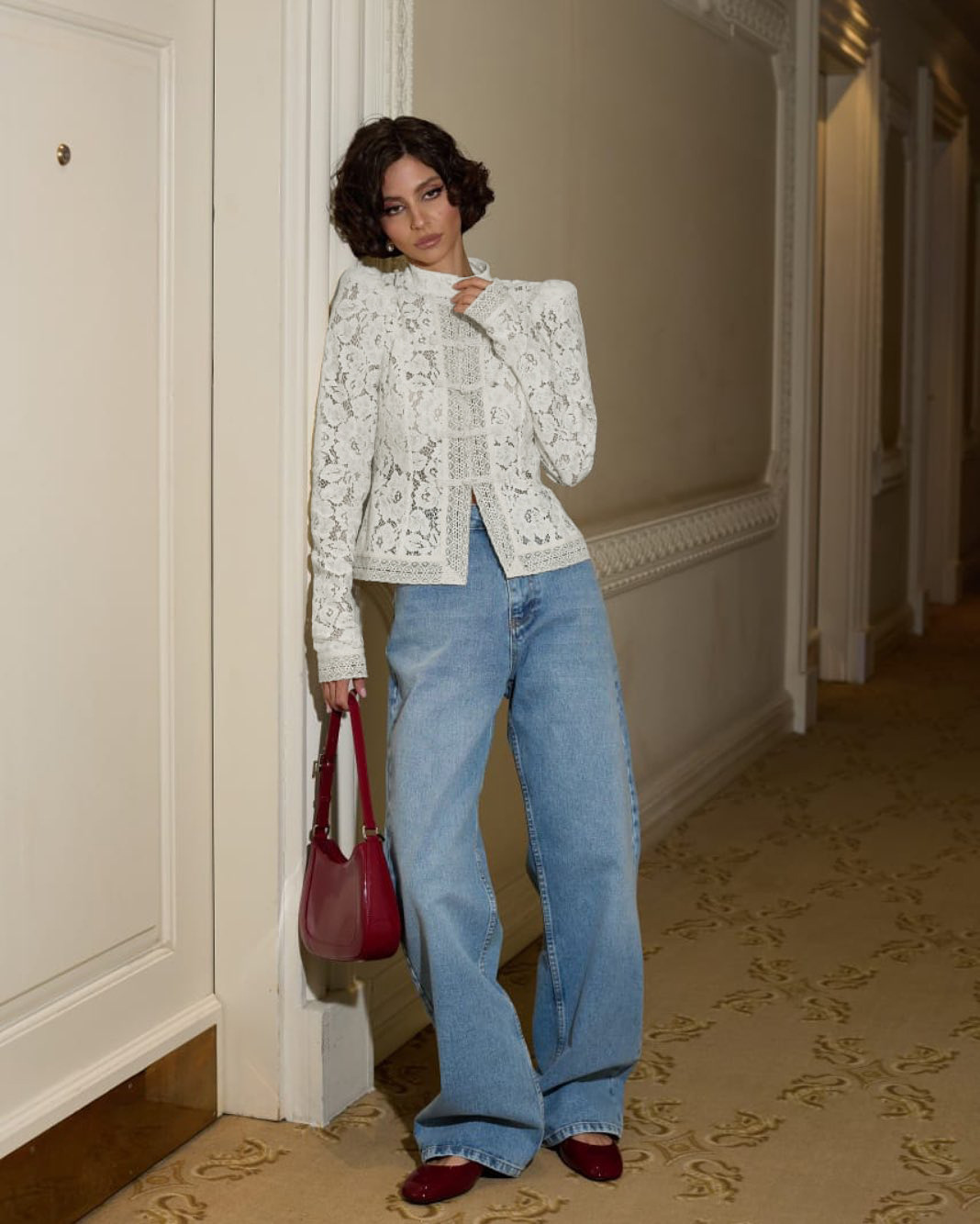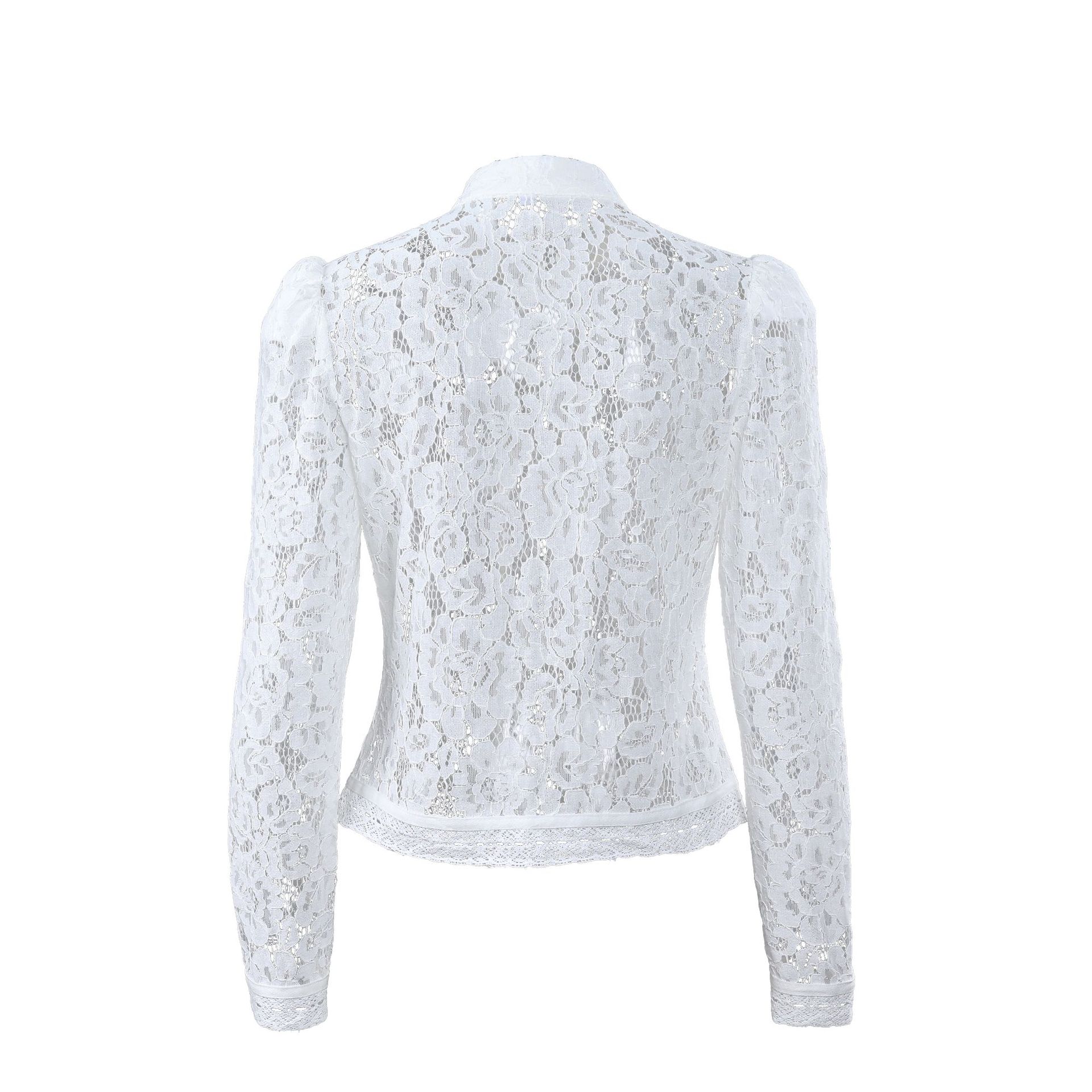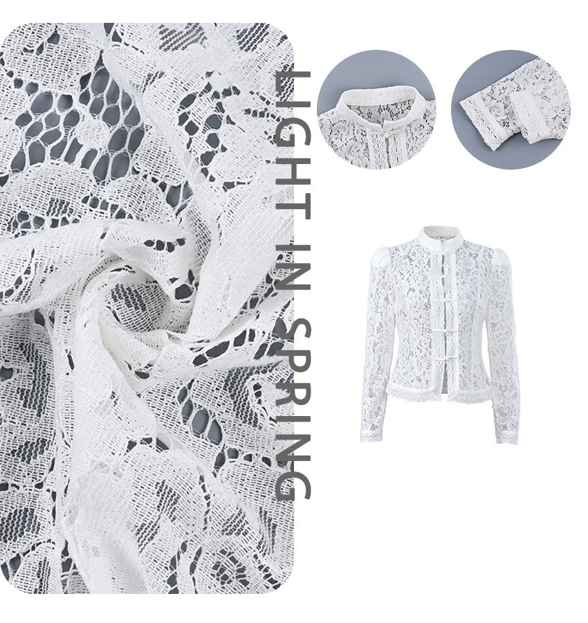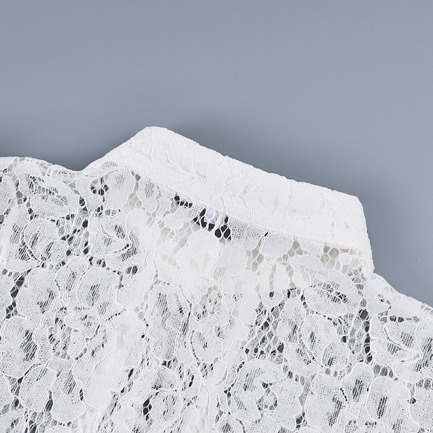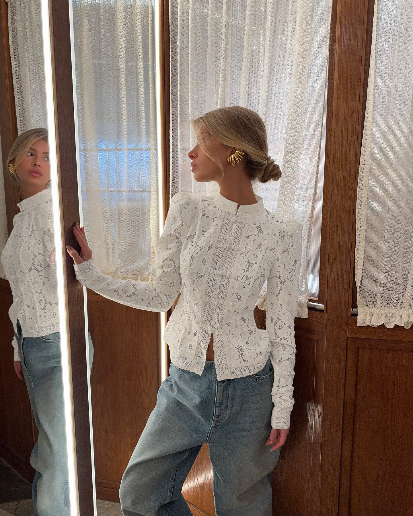 2025 летний кружевной крючок воротник стойка облегающих рубашек женский дизайн стильный темперамент