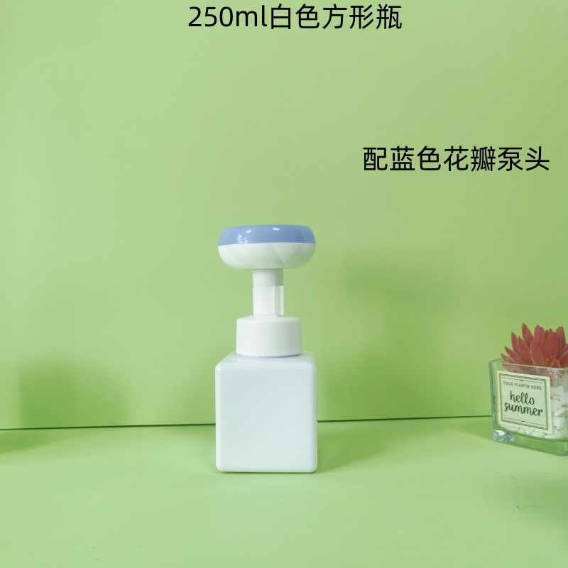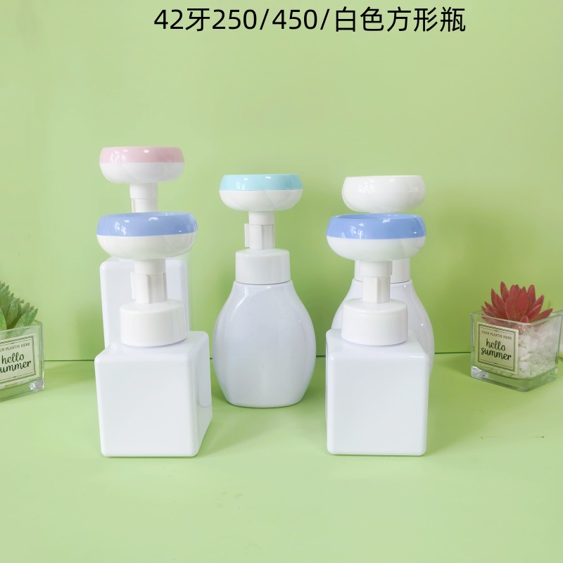 Бутылка с белой пеной 300 мл + синяя насадка-насос в форме лепестка; Бутылка с белой пеной, 300 мл + розовая насадка-насос в форме лепестка; Белая квадратная бутылка объемом 250 мл + насос с синей лепестковой головкой; Белая квадратная бутылка объемом 450 мл + насос с синими лепестками; Белая квадратная бутылка объемом 250 мл + насадка-насос с белыми лепестками.; Белая квадратная бутылка объемом 250 мл + насос с розовой лепестковой головкой; Белая квадратная бутылка объемом 450 мл + насос с розовыми лепестками; Белая квадратная бутылка объемом 450 мл + насадка-насос с белыми лепестками; Бутылка с белой пеной объемом 300 мл + насосная головка с белыми лепестками; 300 мл прозрачный флакон с пеной + белая насадка-помпа в форме лепестка; 300 мл прозрачный флакон с пеной + синяя насадка-помпа в форме лепестка; 300 мл прозрачный флакон с пеной + розовая насадка-насос в форме лепестка; Белый полукруглый пенопластовый флакон объемом 300 мл + насадка-насос с белыми лепестками.; Белый полукруглый флакон из пенопласта объемом 300 мл + насадка-насос с розовыми лепестками; Белый полукруглый пенопластовый флакон объемом 300 мл + насадка насоса с синими лепестками