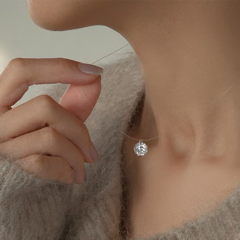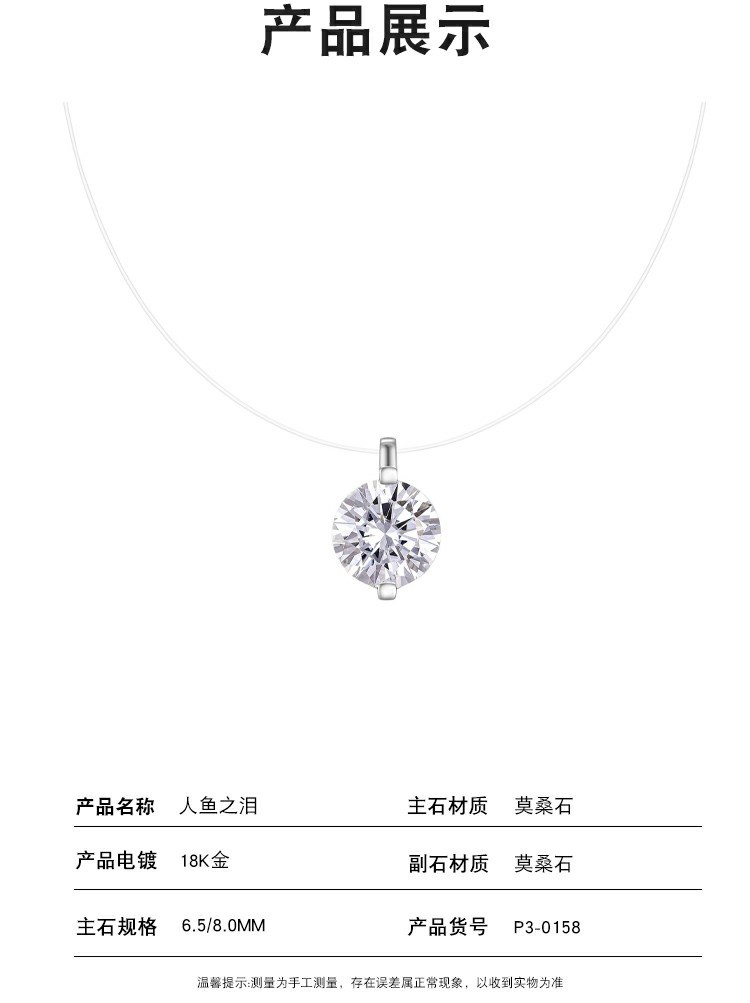 Серебряное колье 925 пробы с круглым моассанитом, дизайнерская цепочка-ниша, невидимая линия, высококачественное ожерелье с подвеской в форме слезы русалки