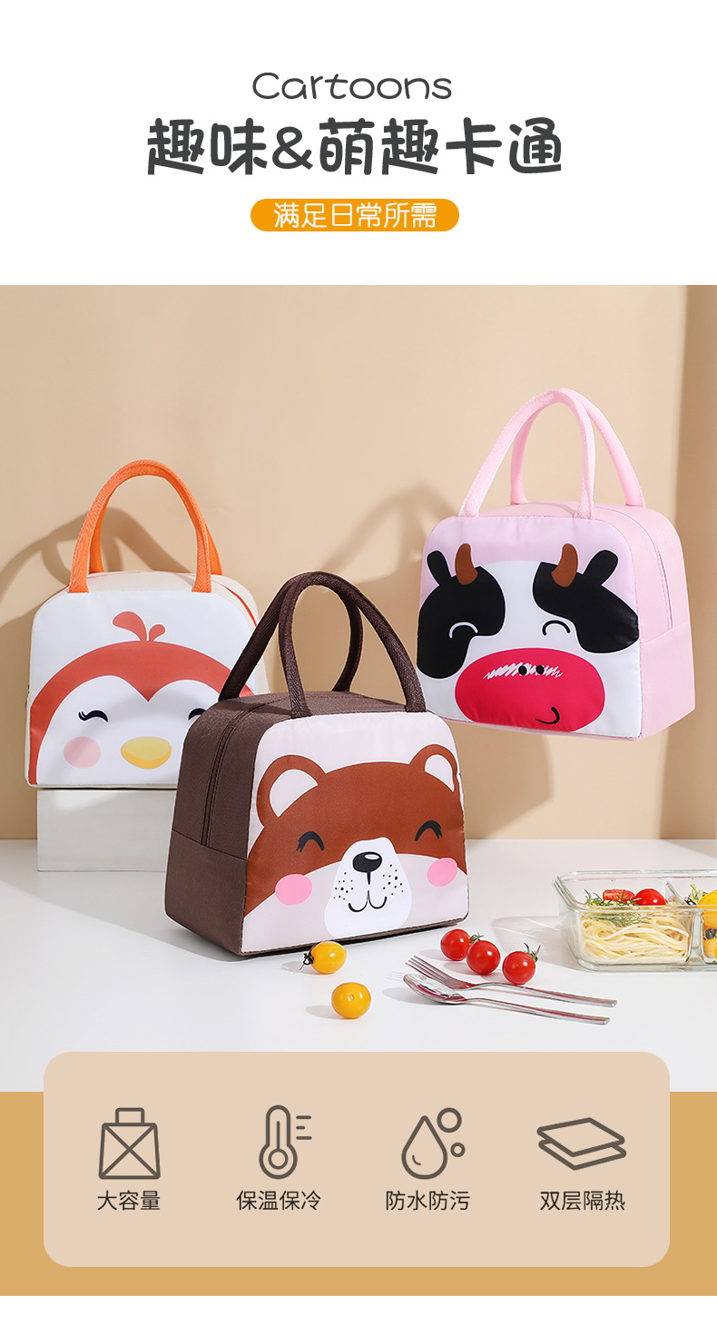 Сумка для ланча с большим лицом и милым животным, сумка для ланча для учащихся начальной школы, сумка для ланча, маленькая сумка-тоут, сумка для ланча с рисунком