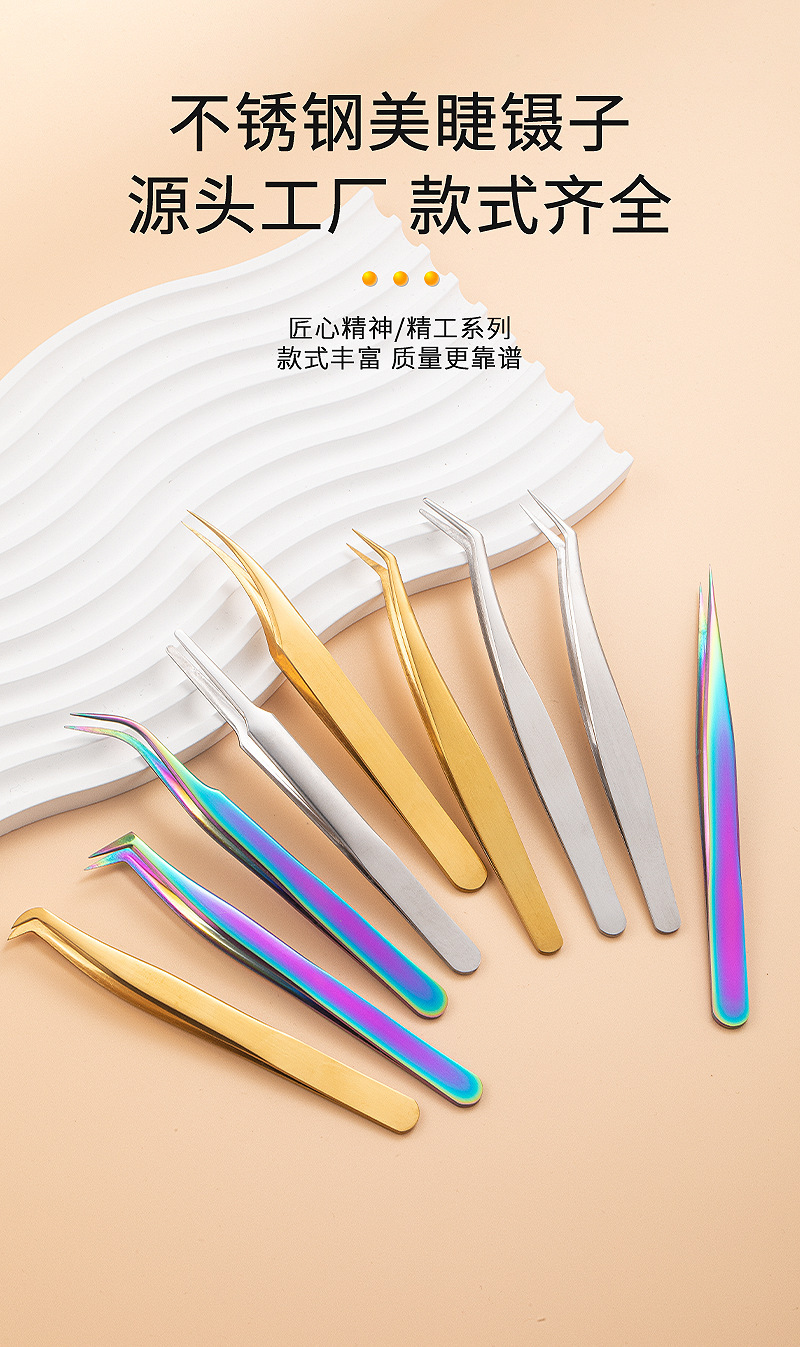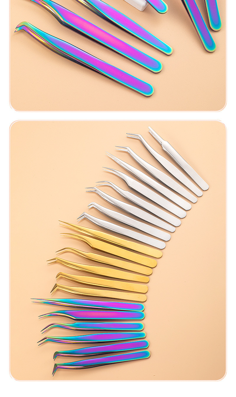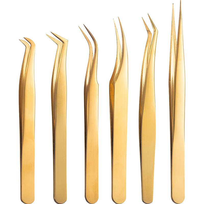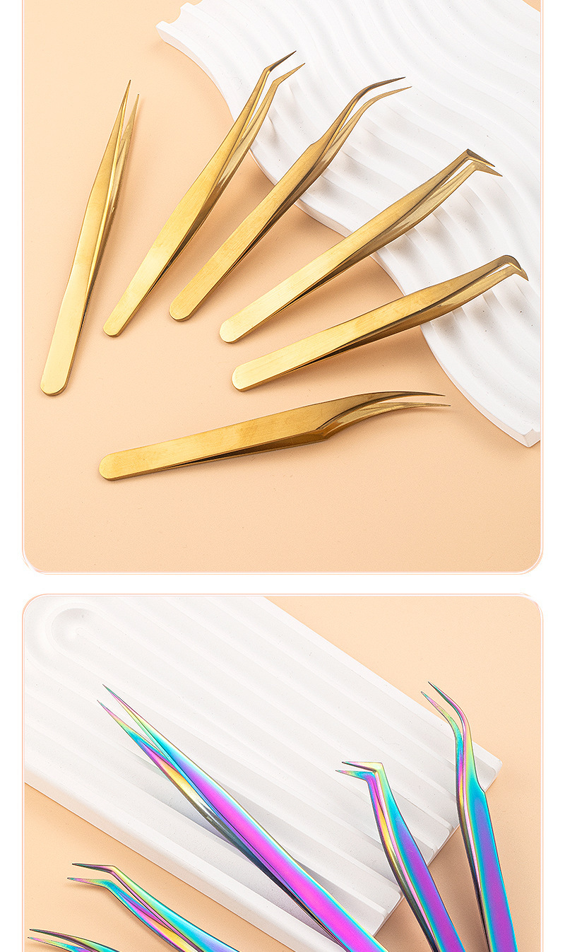 Пинцет для ресниц, пинцет для наращивания ресниц, косметические пинцеты для ресниц, золотые зажимы для цветущих перьев, щипцы для завивки накладных ресниц, косметические пинцеты из нержавеющей стали