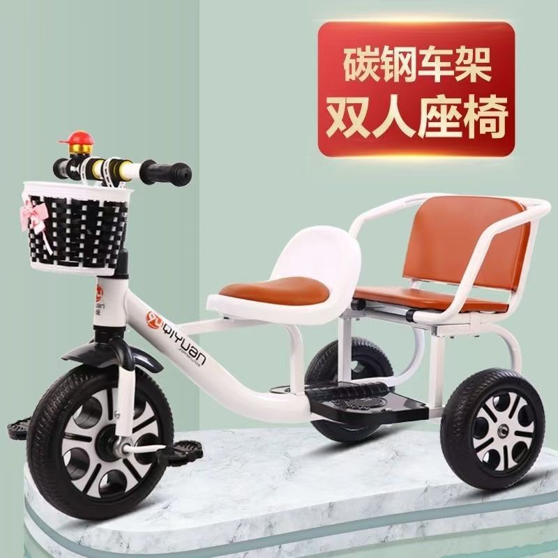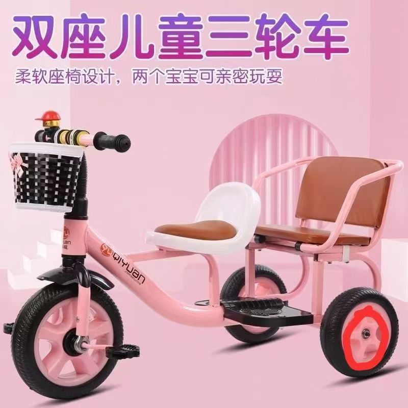 Детский трехколесный велосипед на двоих, двойной трехколесный велосипед, детская коляска, трехколесный велосипед, велосипед, вмещает двух человек