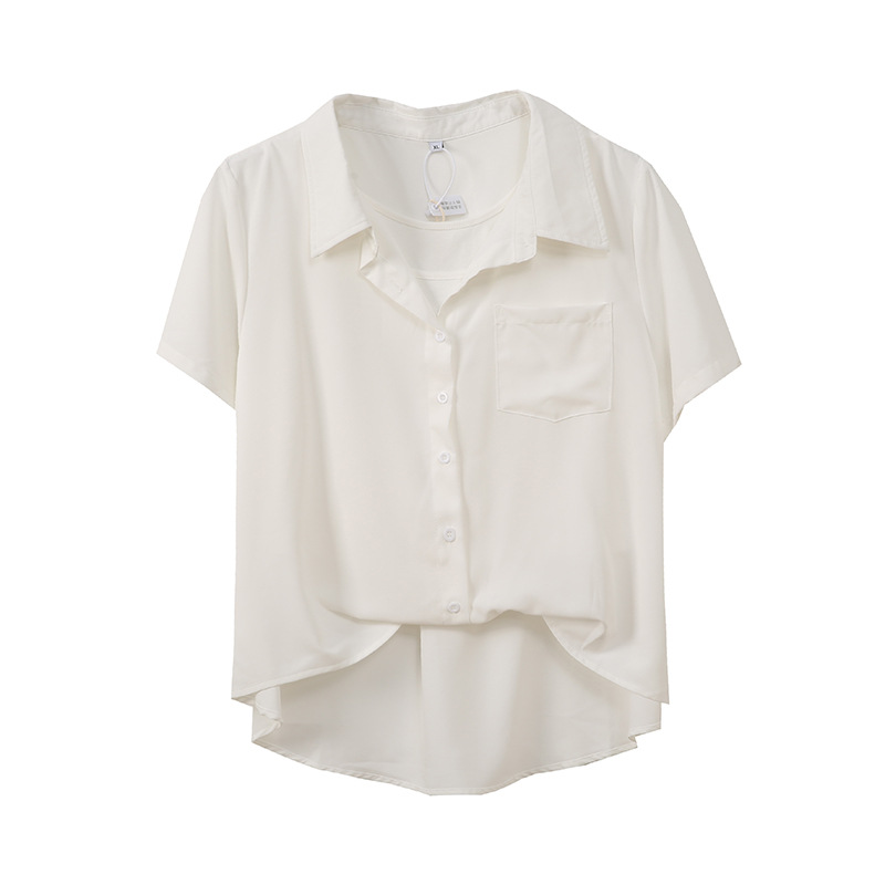 Женская одежда больших размеров Inno, рубашка с коротким рукавом, имитирующая двухслойность, без пэчворка, новый летний стиль, универсальный топ для повседневной носки 252561.
