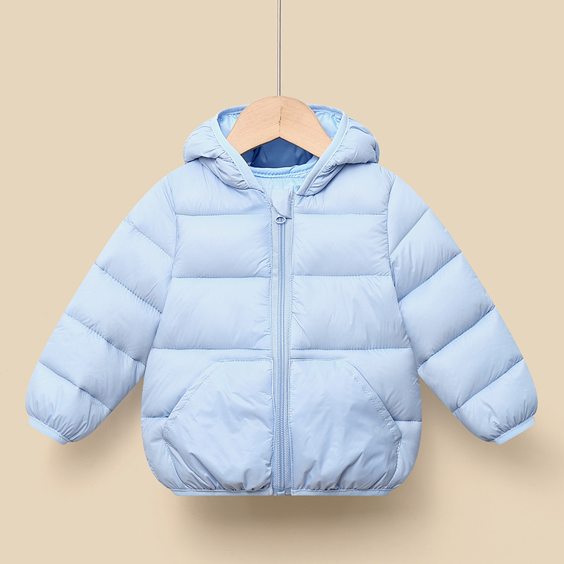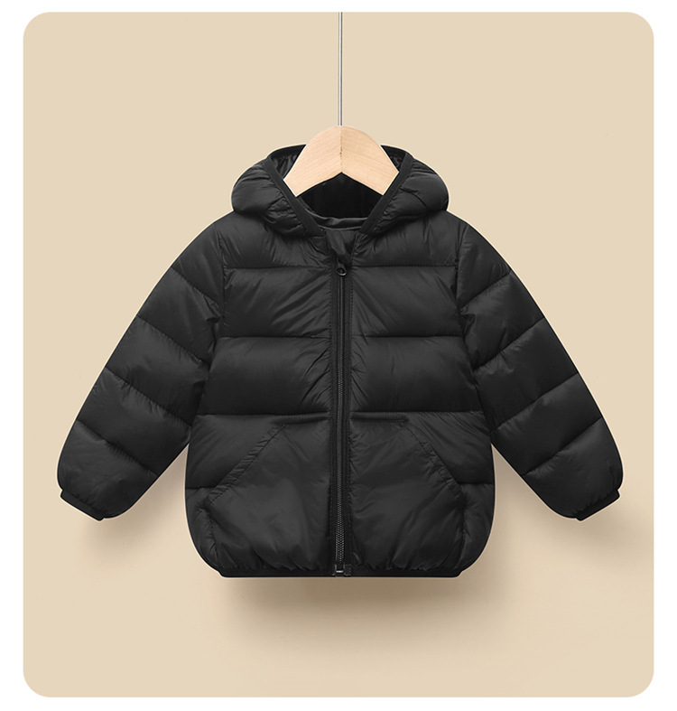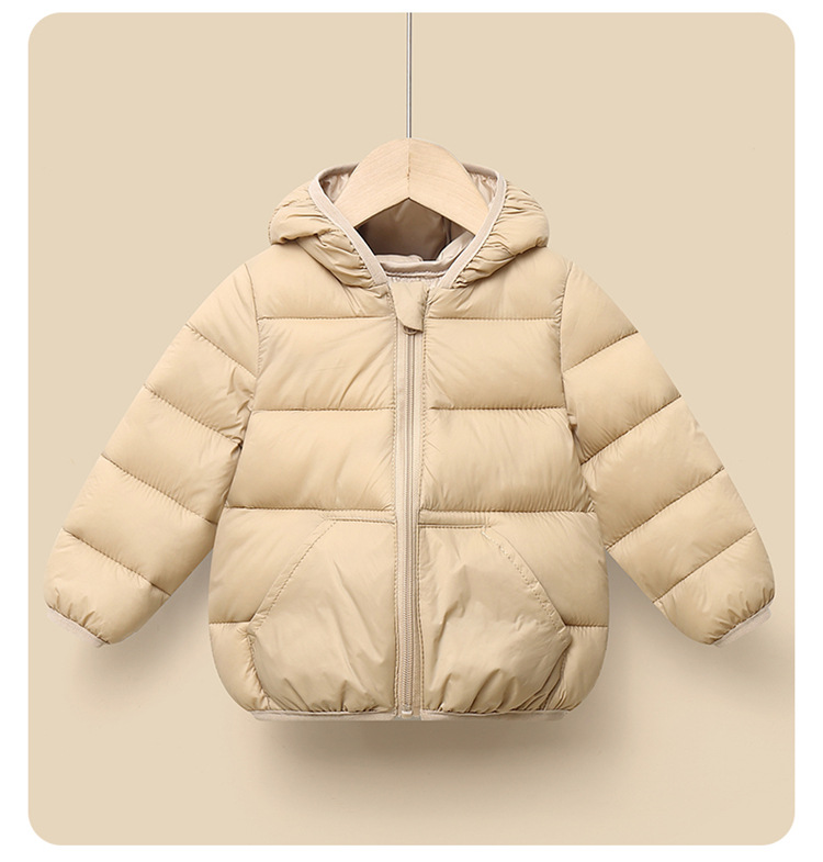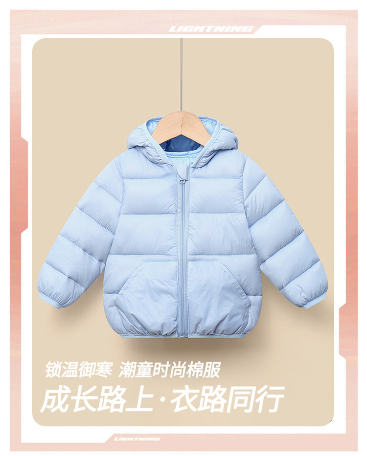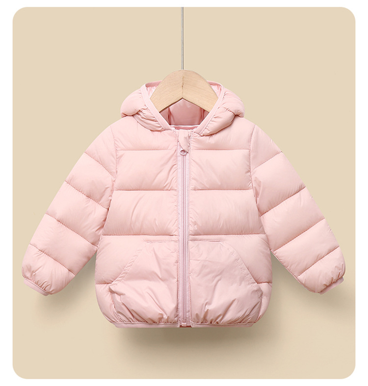 Новая осенне-зимняя детская хлопковая одежда для внешней торговли: однотонная легкая хлопковая куртка с капюшоном для мальчиков и девочек (для детей младшего и среднего возраста)