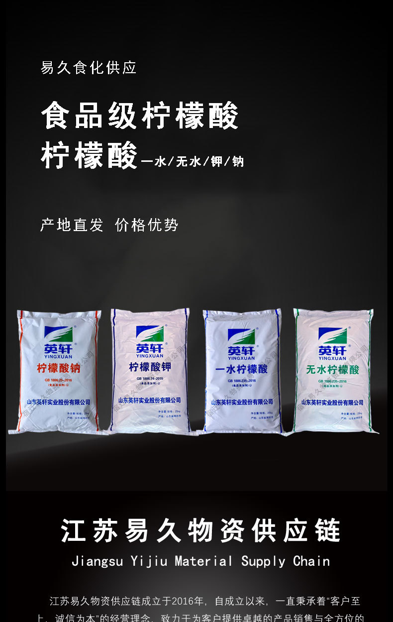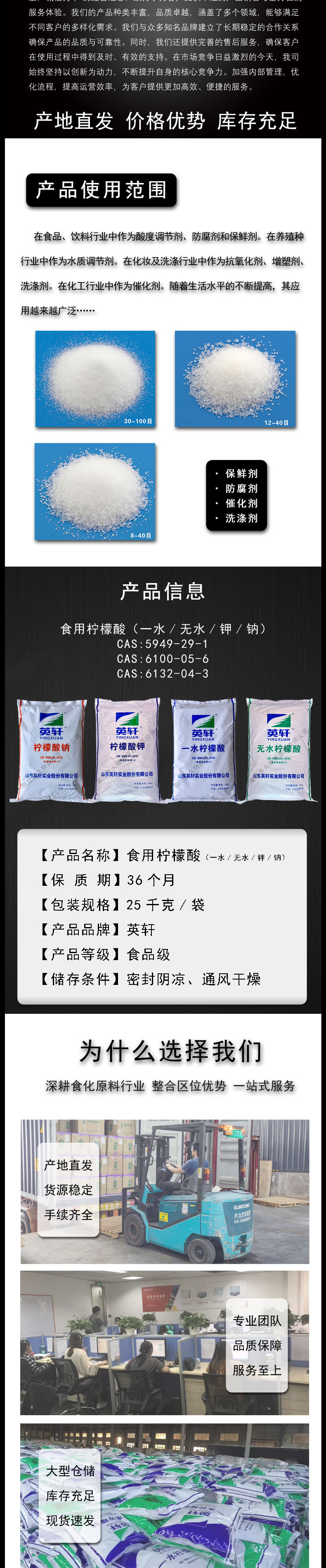 Съедобный цитрат натрия Yingxuan Безводная пищевая лимонная кислота спот-регулятор кислотности цитрат калия