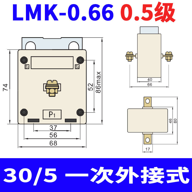 Трансформатор тока Delixi LMK-0.66, класс точности 0.5, переменный ток 100/150/300/500/1000/5А/BH
