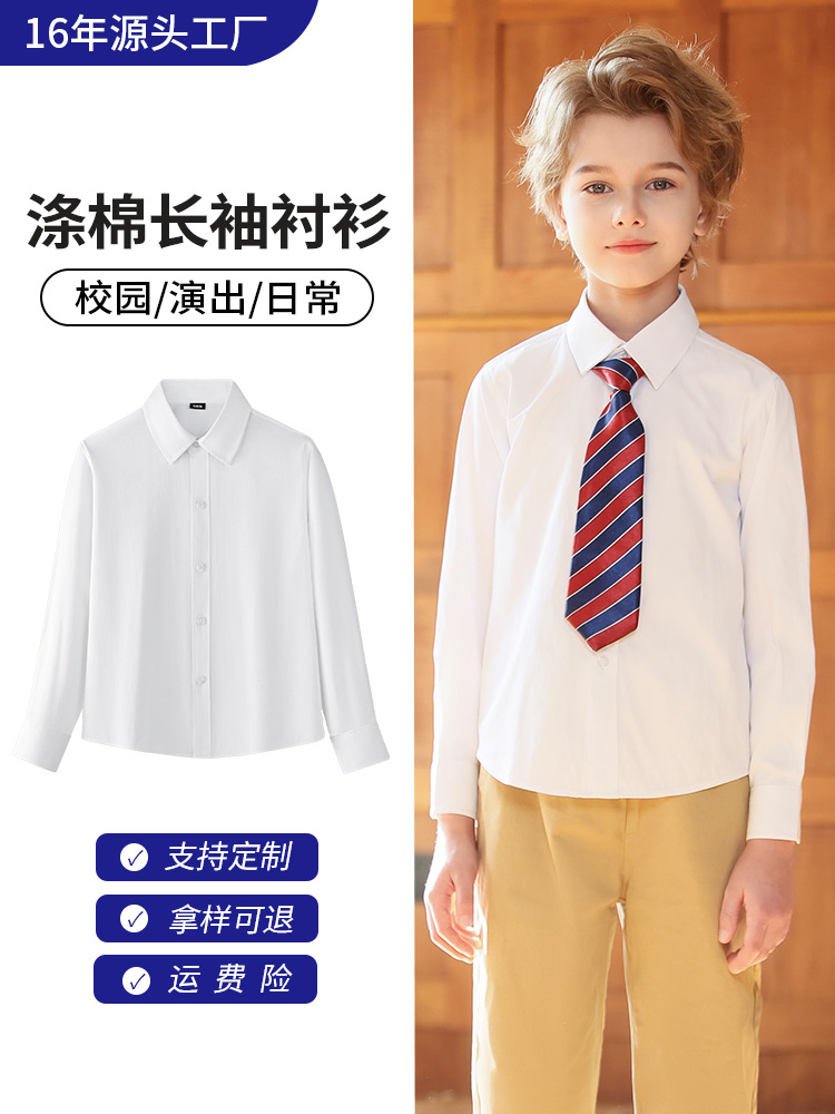 Белые рубашки для мальчиков, детские белые рубашки, средняя и большая детская школьная форма, одежда для выступлений, весенне-осенние белые рубашки с длинными рукавами, классная форма.