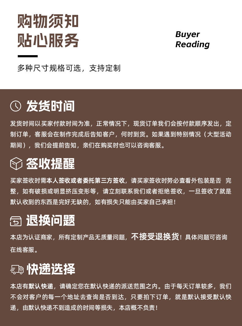 您好,店铺定制产品,请联系客服具体沟通,确认下单后不退不换,