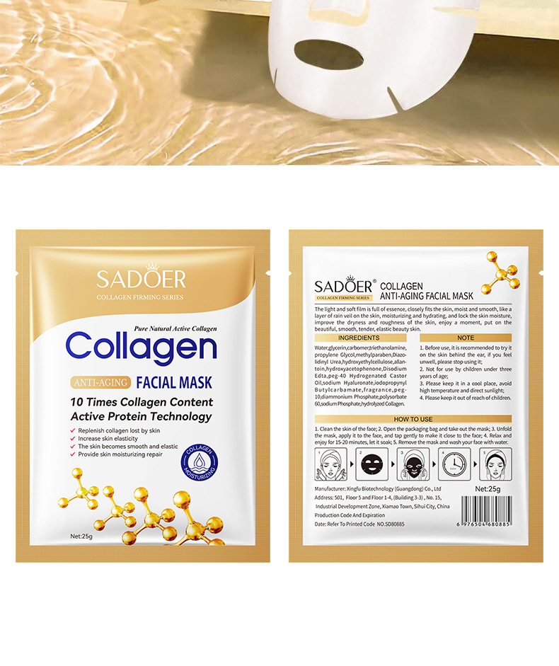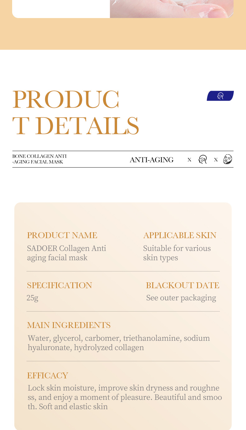 Полная английская маска SADOER Костный коллаген против морщин Маска осветляет увлажняющий FacialMask Оптовая торговля через границу