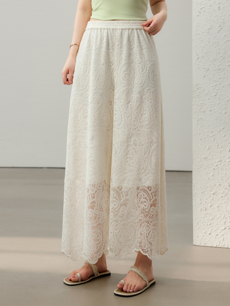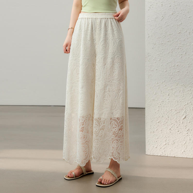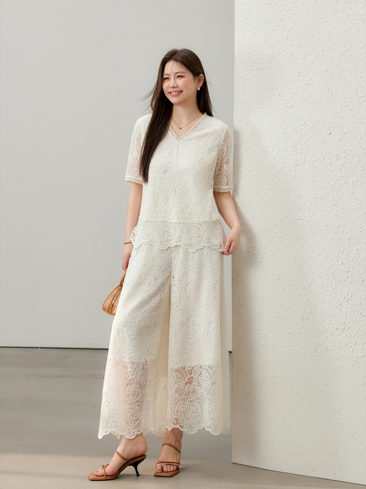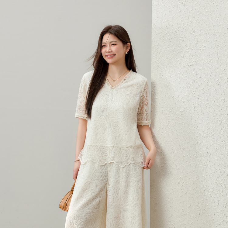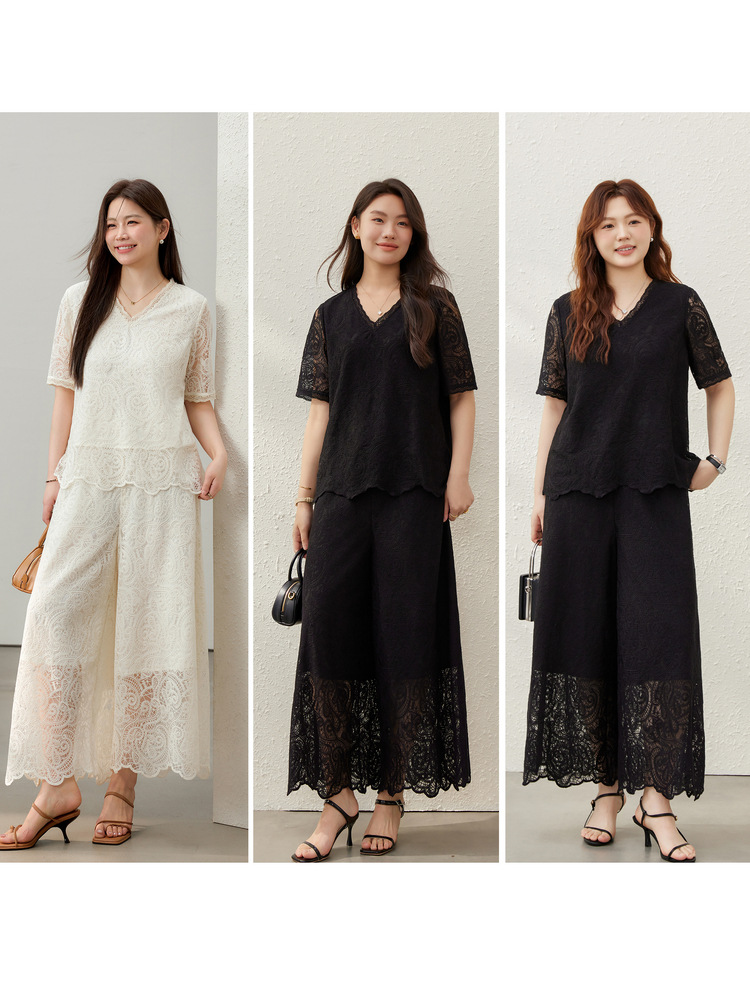 [Hua Jian Shuying] Bo Xi Feng Heavy Industry Полая кружевная рубашка и брюки Костюм-двойка Fat mm2025 Лето Новый стиль